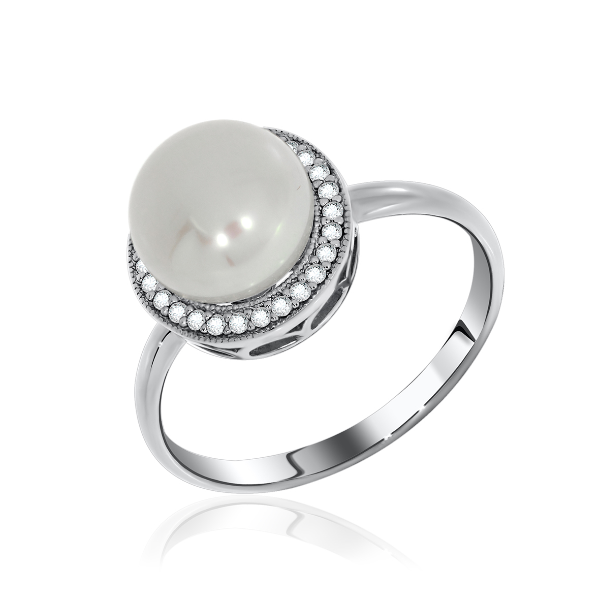 Кольцо для женщин из серебра 925 пробы с жемчугом,фианитами из коллекции Афродита артикул 1340050806л от компании KRASNOE