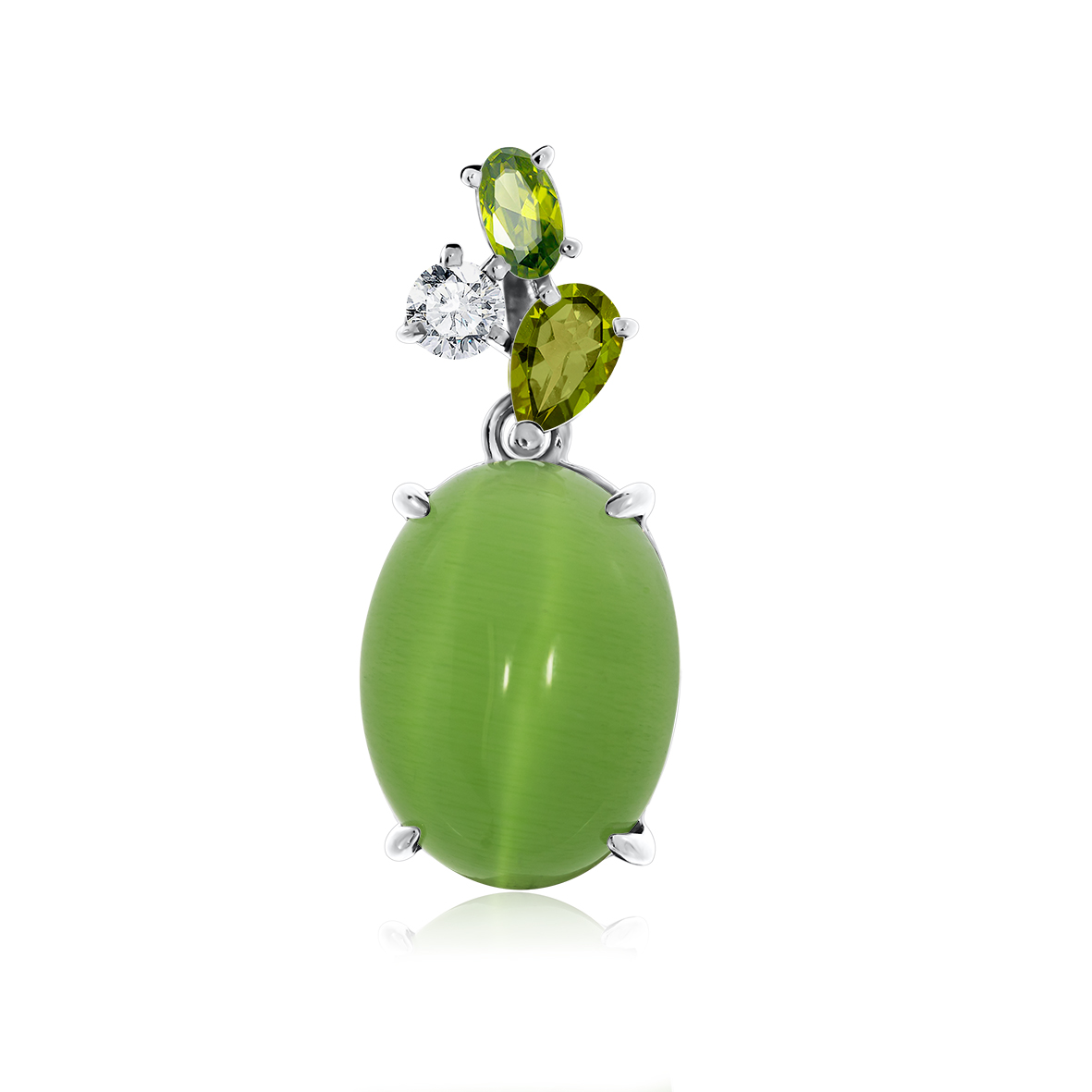 Подвеска для женщин из серебра 925 пробы с ситаллом,кошачим глазом,фианитами из коллекции Уральские самоцветы артикул 3340260874-60 от компании KRASNOE