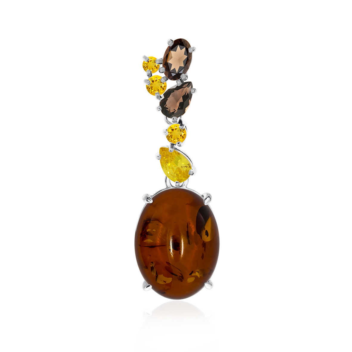 Подвеска для женщин из серебра 925 пробы с янтарем,топазами,цитринами из коллекции Уральские самоцветы артикул 3340480879-51 от компании KRASNOE
