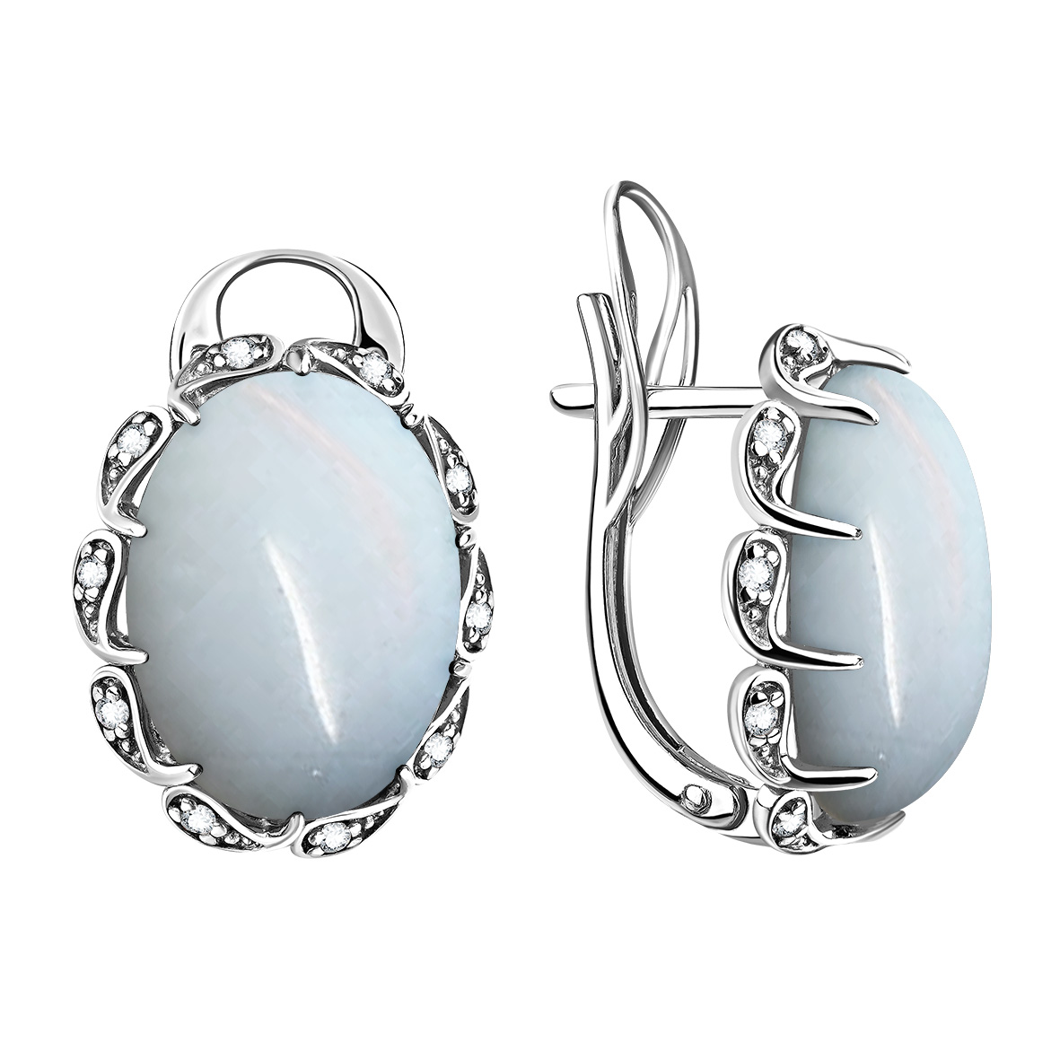 Серьги для женщин из серебра 925 пробы с лунным камнем,фианитами из коллекции Династия артикул 2340935114л от компании KRASNOE