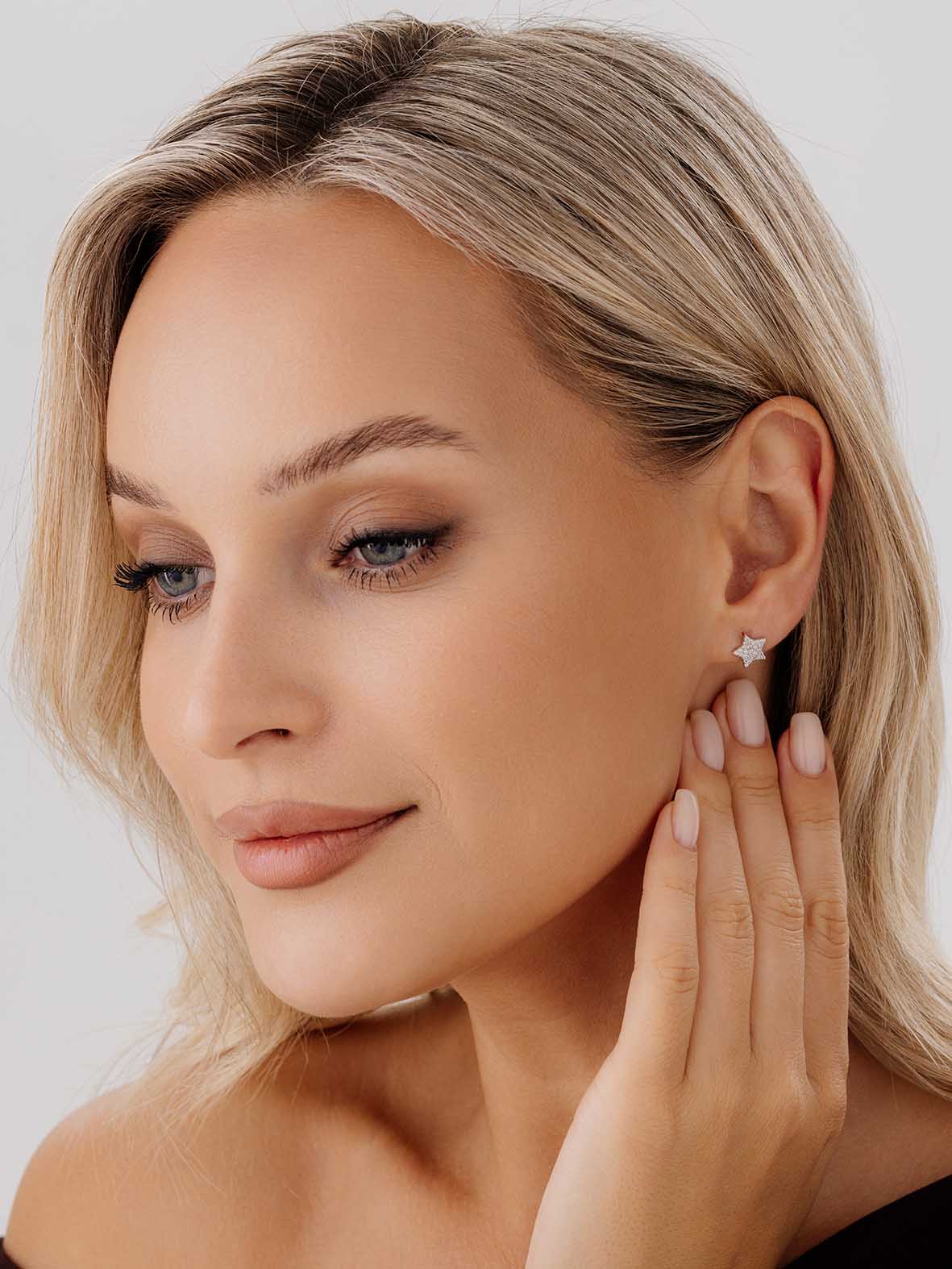 Пусеты для женщин из серебра 925 пробы с фианитами из коллекции Млечный путь артикул 2340205505л от компании KRASNOE