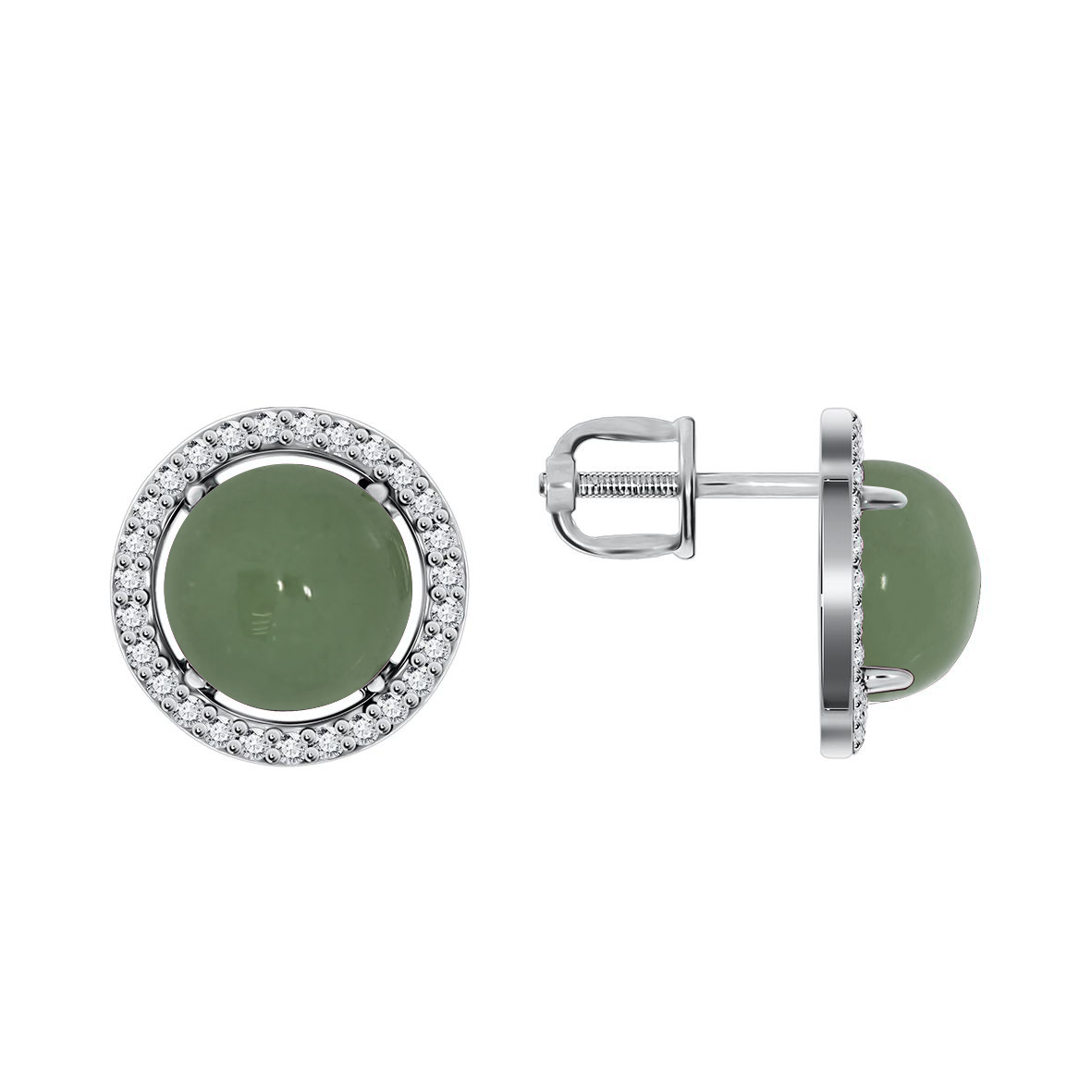 Пусеты для женщин из серебра 925 пробы с синтетическими авантюринами,фианитами из коллекции Уральские самоцветы артикул 2340362055-6 от компании KRASNOE