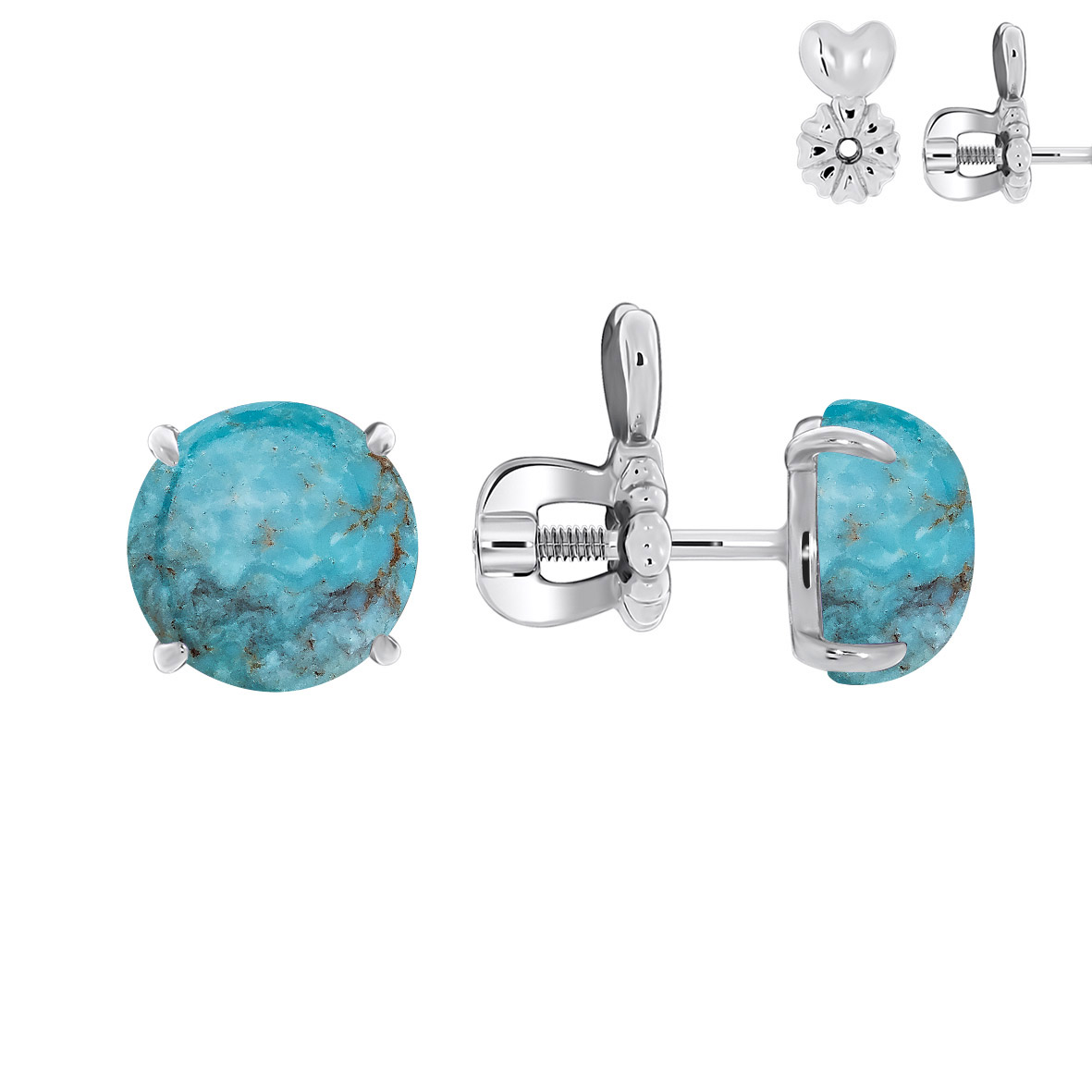 Пусеты для женщин из серебра 925 пробы с бирюзой из коллекции Уральские самоцветы артикул П340312680 от компании KRASNOE