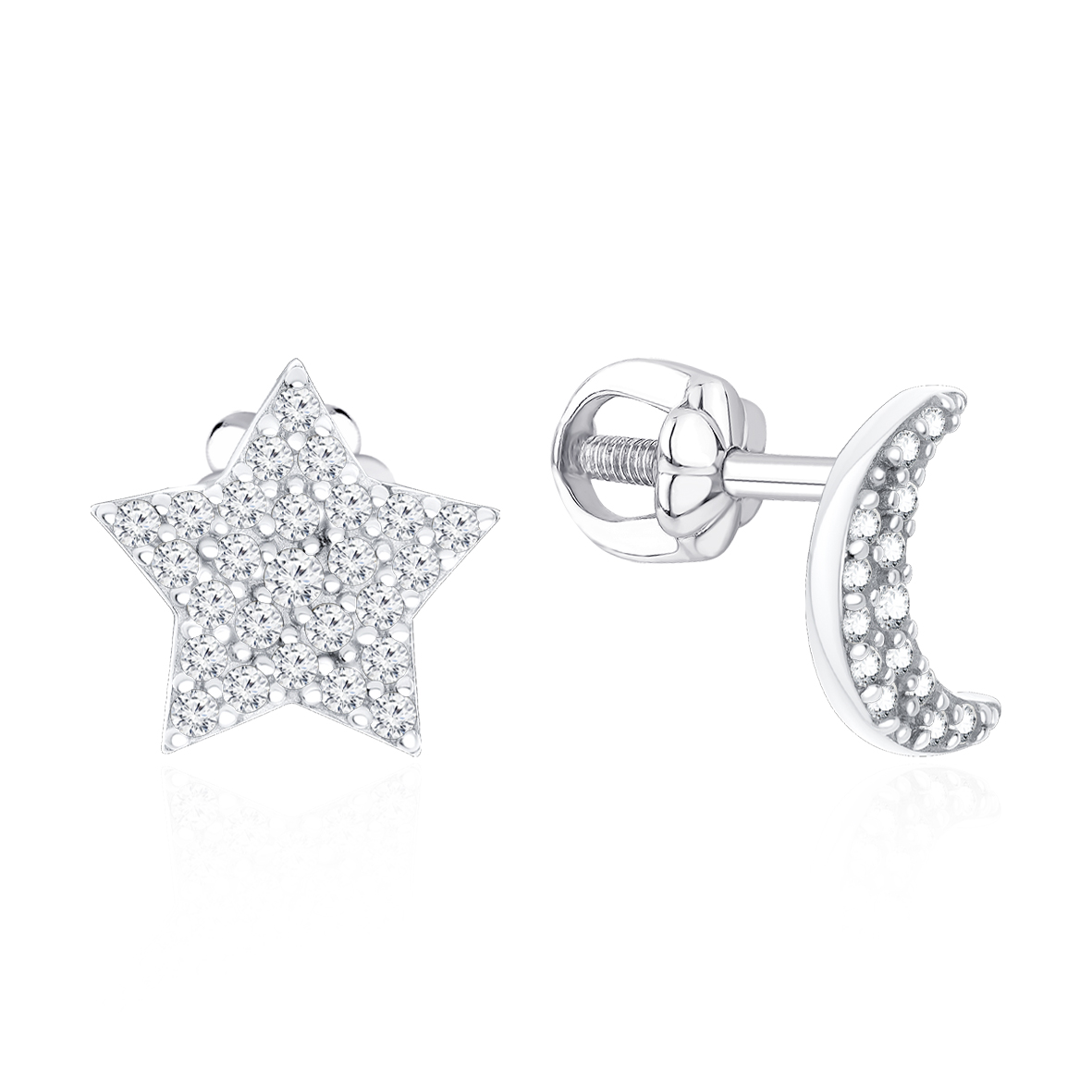 Пусеты для женщин из серебра 925 пробы с фианитами из коллекции Млечный путь артикул 2340205516л от компании KRASNOE
