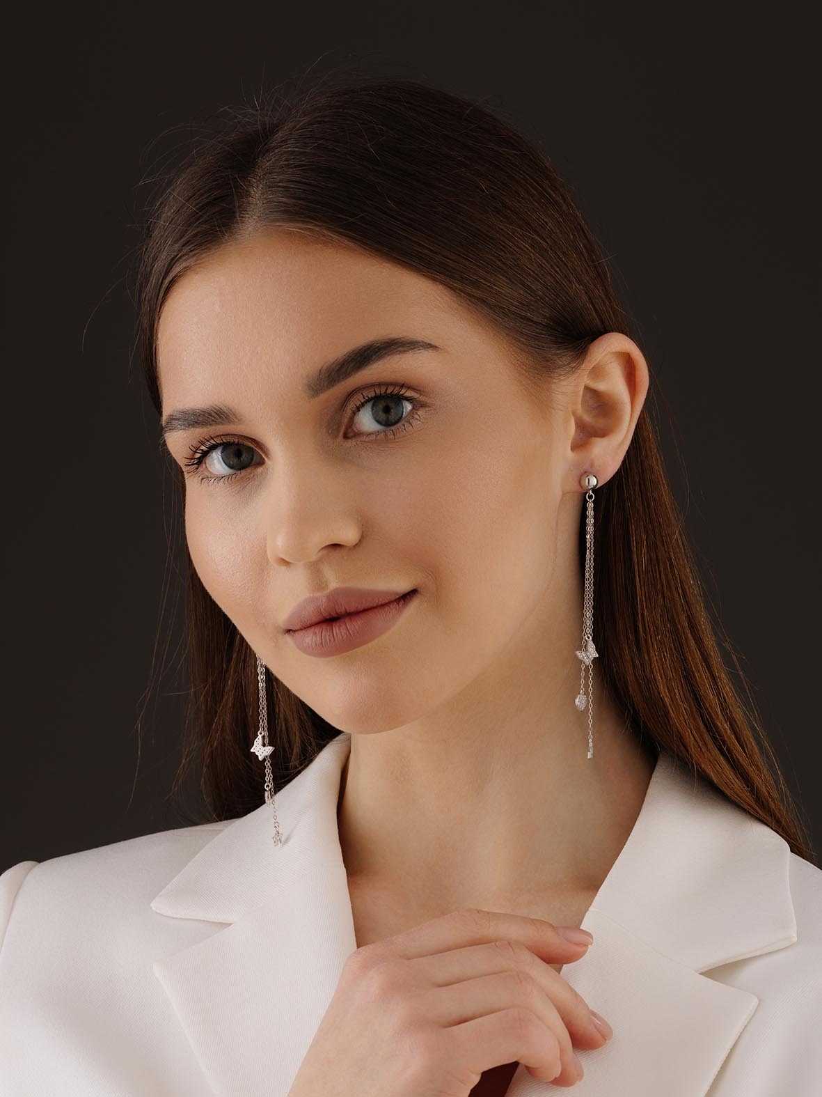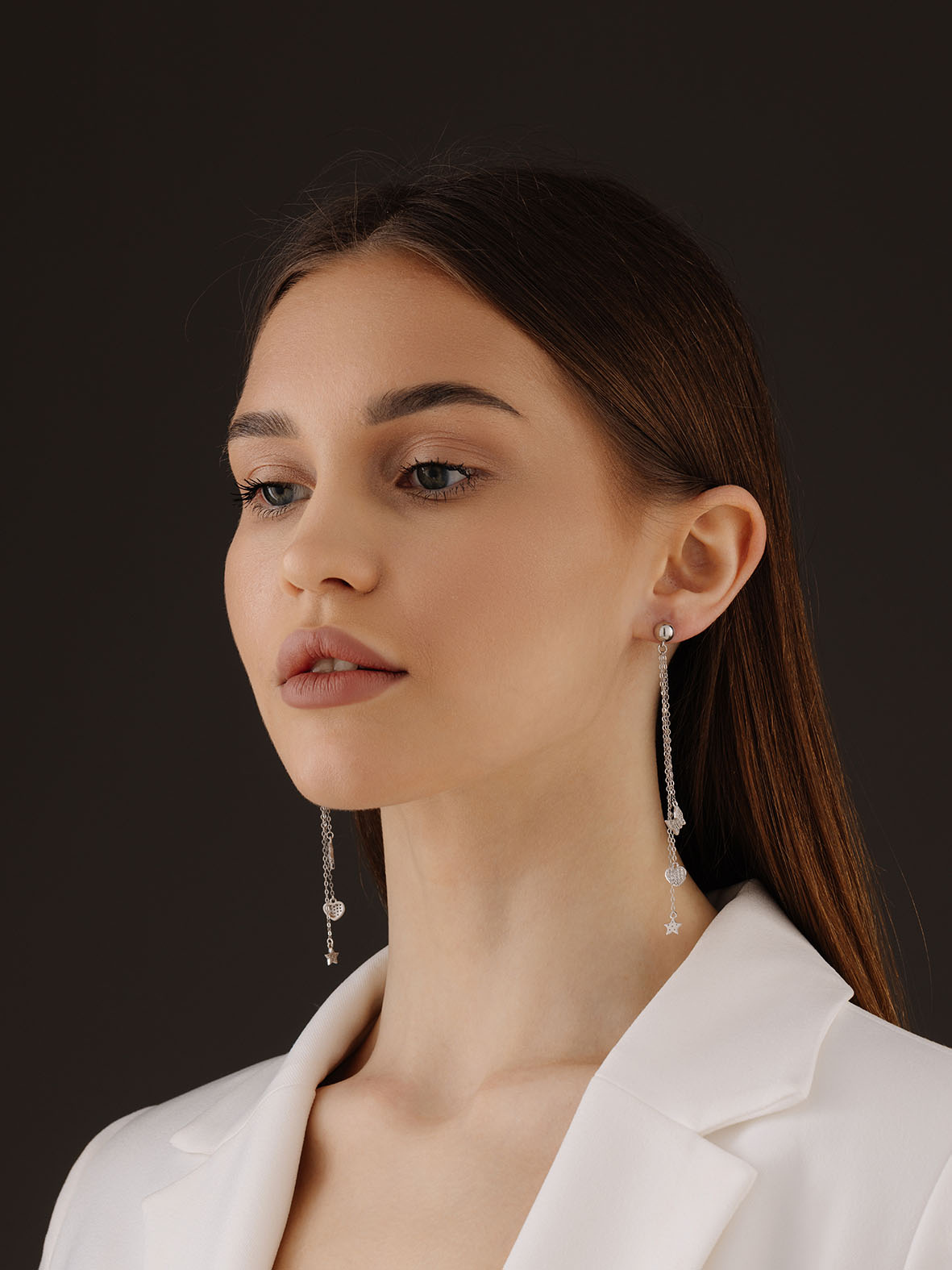 Пусеты для женщин из серебра 925 пробы с фианитами из коллекции Young Star артикул 2340200645л от компании KRASNOE