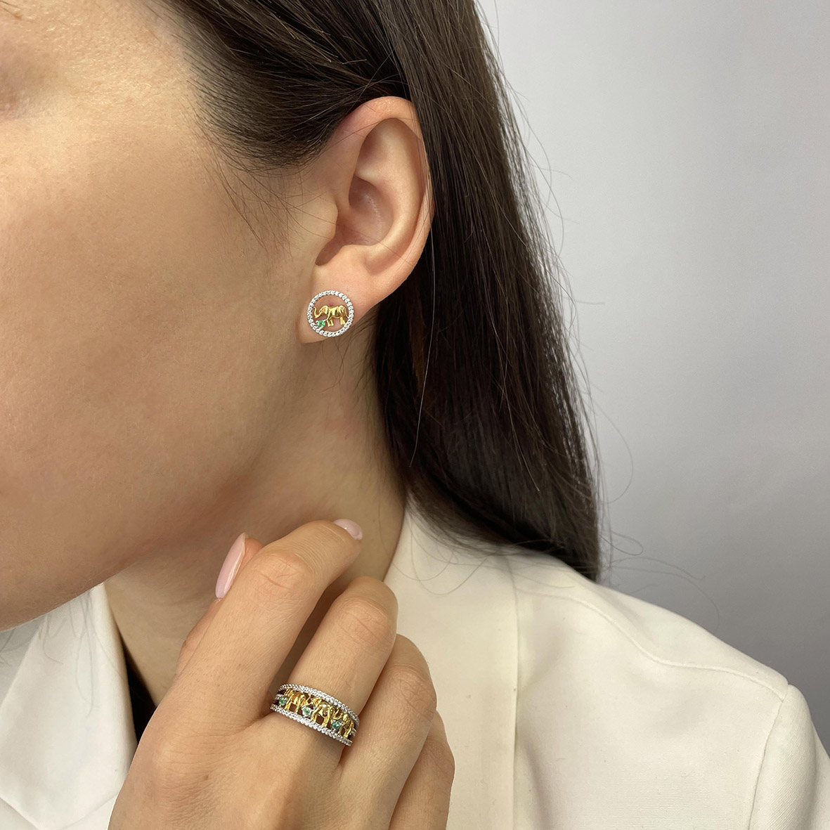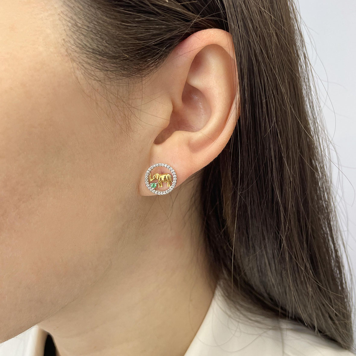 Пусеты для женщин из серебра 925 пробы с изумрудами,фианитами из коллекции Young Star артикул 2350011940л от компании KRASNOE