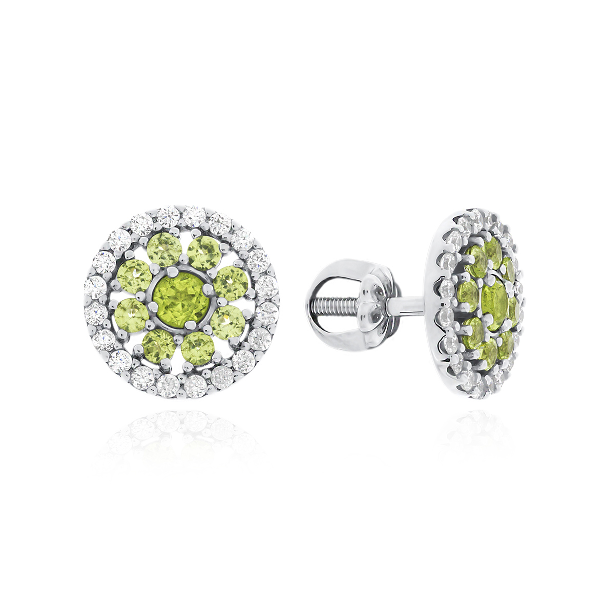 Пусеты для женщин из серебра 925 пробы с хризолитами,фианитами из коллекции Royals артикул 2340811801л от компании KRASNOE