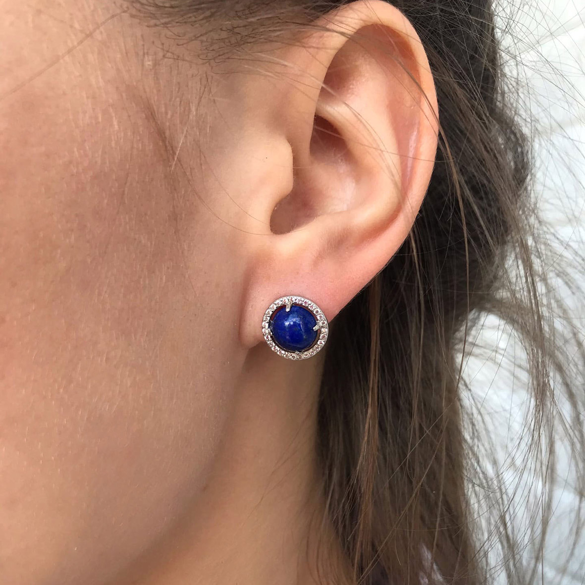 Пусеты для женщин из серебра 925 пробы с лазуритами,фианитами из коллекции Уральские самоцветы артикул 2340472055 от компании KRASNOE