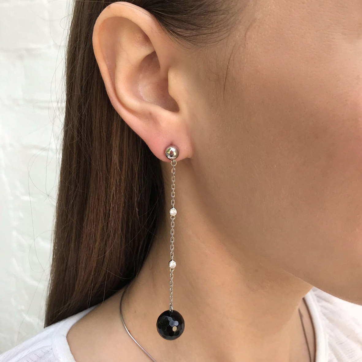 Пусеты для женщин из серебра 925 пробы с ониксами,фианитами из коллекции Icecream артикул 2340430852л от компании KRASNOE
