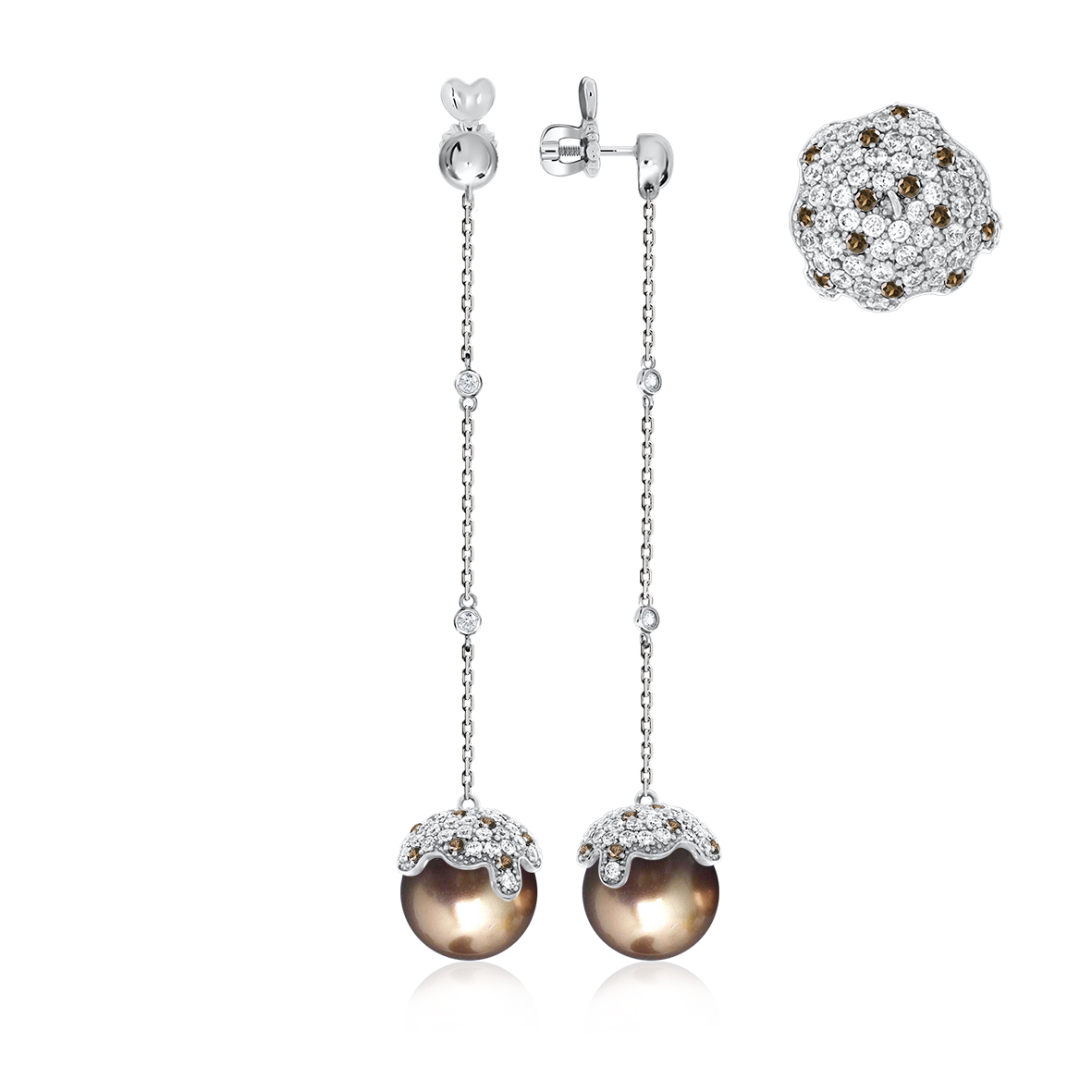 Пусеты для женщин из серебра 925 пробы с жемчугом,ситаллами,фианитами из коллекции Icecream артикул 2340240818л-43 от компании KRASNOE