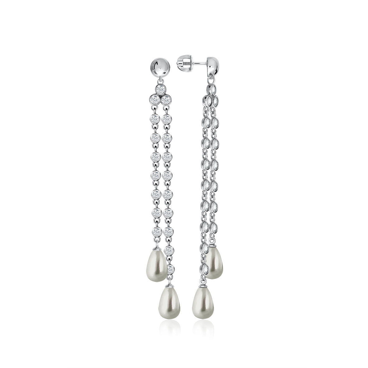 Пусеты для женщин из серебра 925 пробы с жемчугами,фианитами из коллекции Шанель артикул 2340240542л от компании KRASNOE
