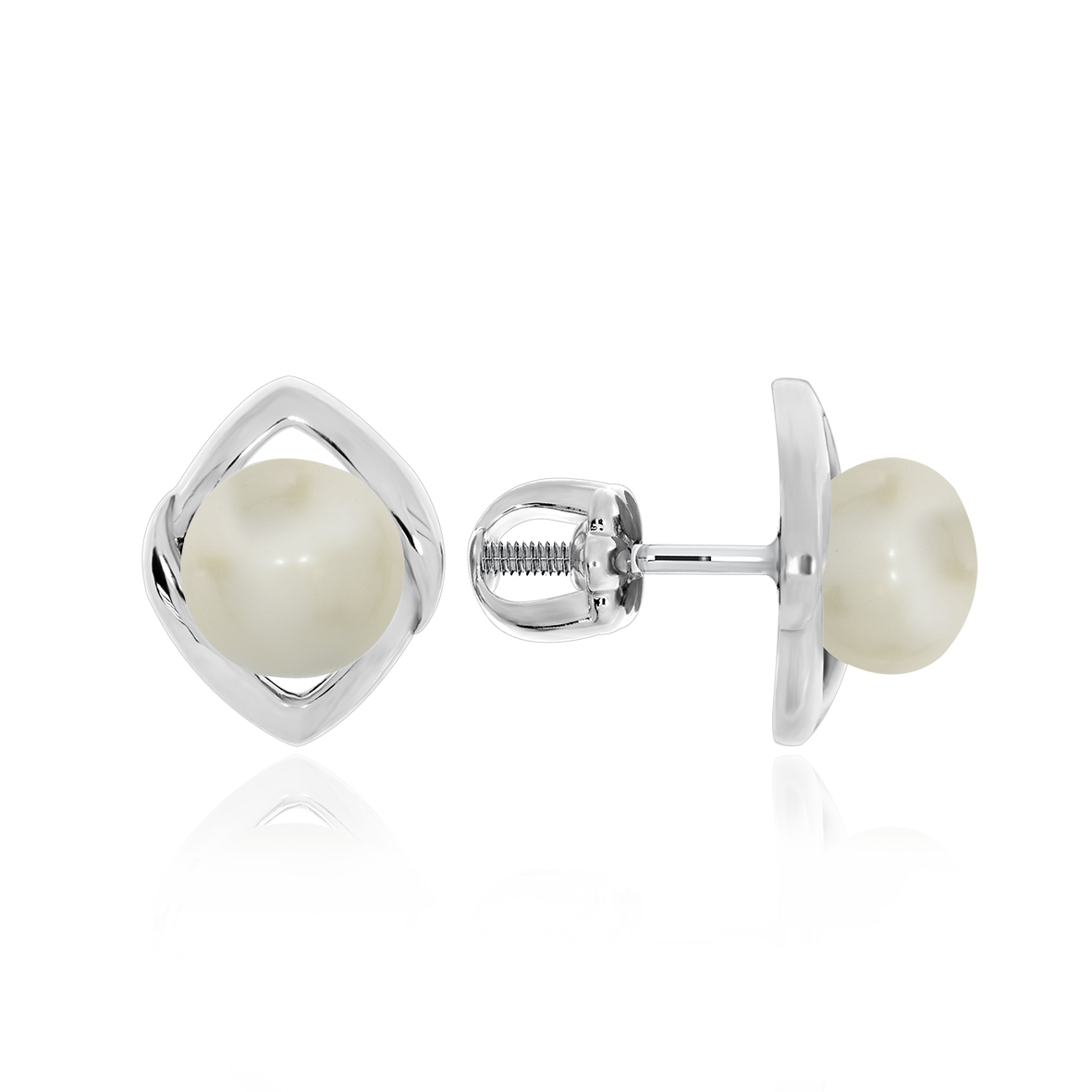 Пусеты для женщин из серебра 925 пробы с жемчугами из коллекции Афродита артикул 2340051221 от компании KRASNOE