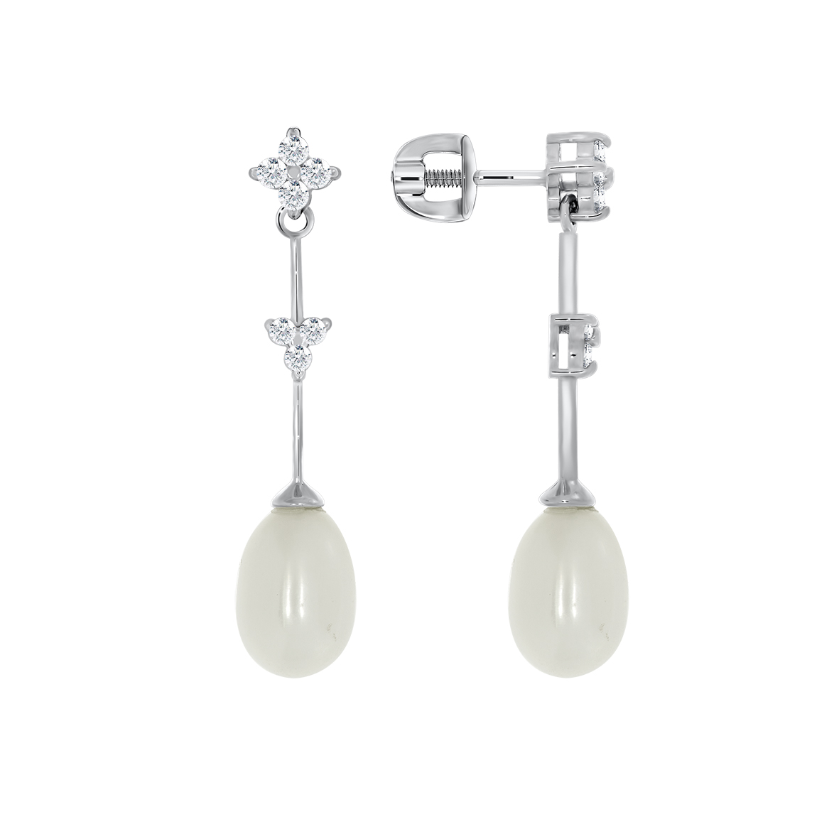 Пусеты для женщин из серебра 925 пробы с жемчугом,фианитами из коллекции Lady артикул П340240737 от компании KRASNOE