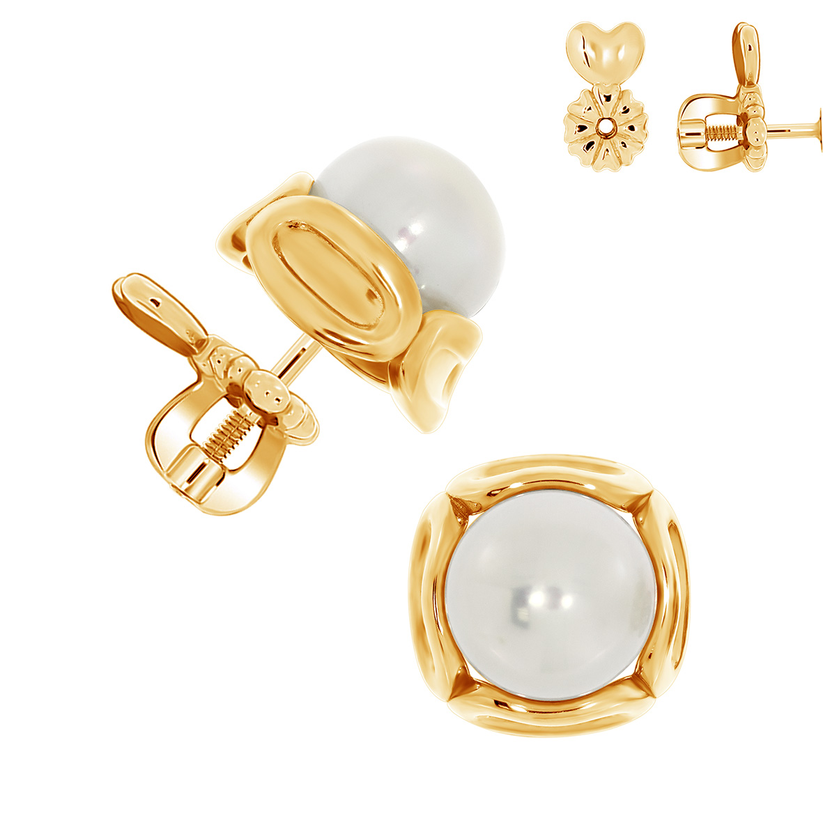 Пусеты для женщин из серебра 925 пробы с жемчугом из коллекции Lady артикул П320050836 от компании KRASNOE