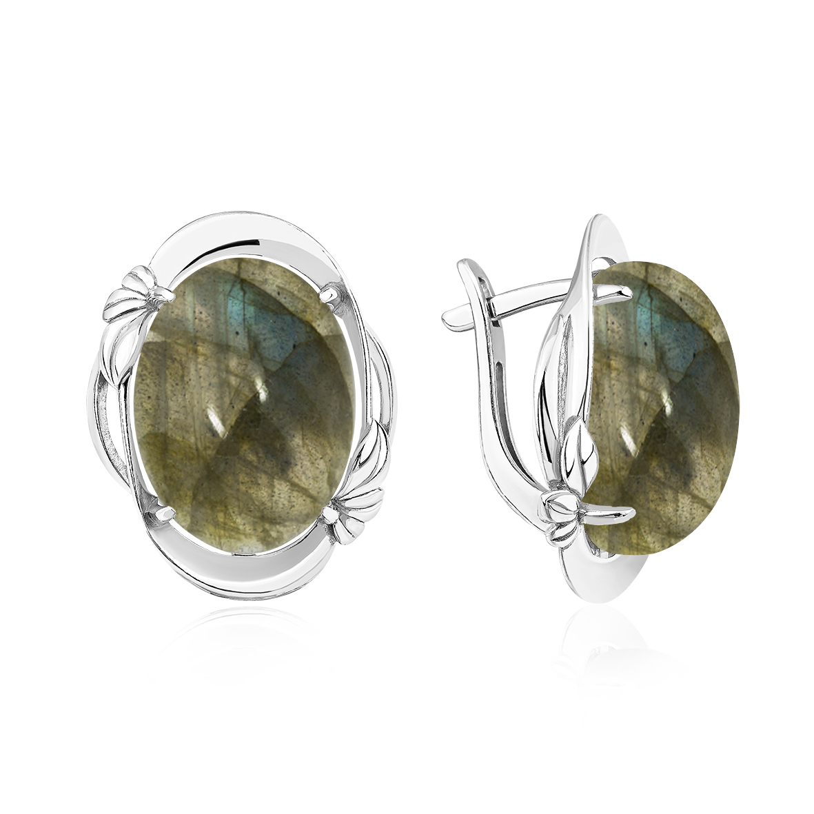 Серьги для женщин из серебра 925 пробы с лабрадоритами из коллекции Уральские самоцветы артикул 2340Л01775 от компании KRASNOE