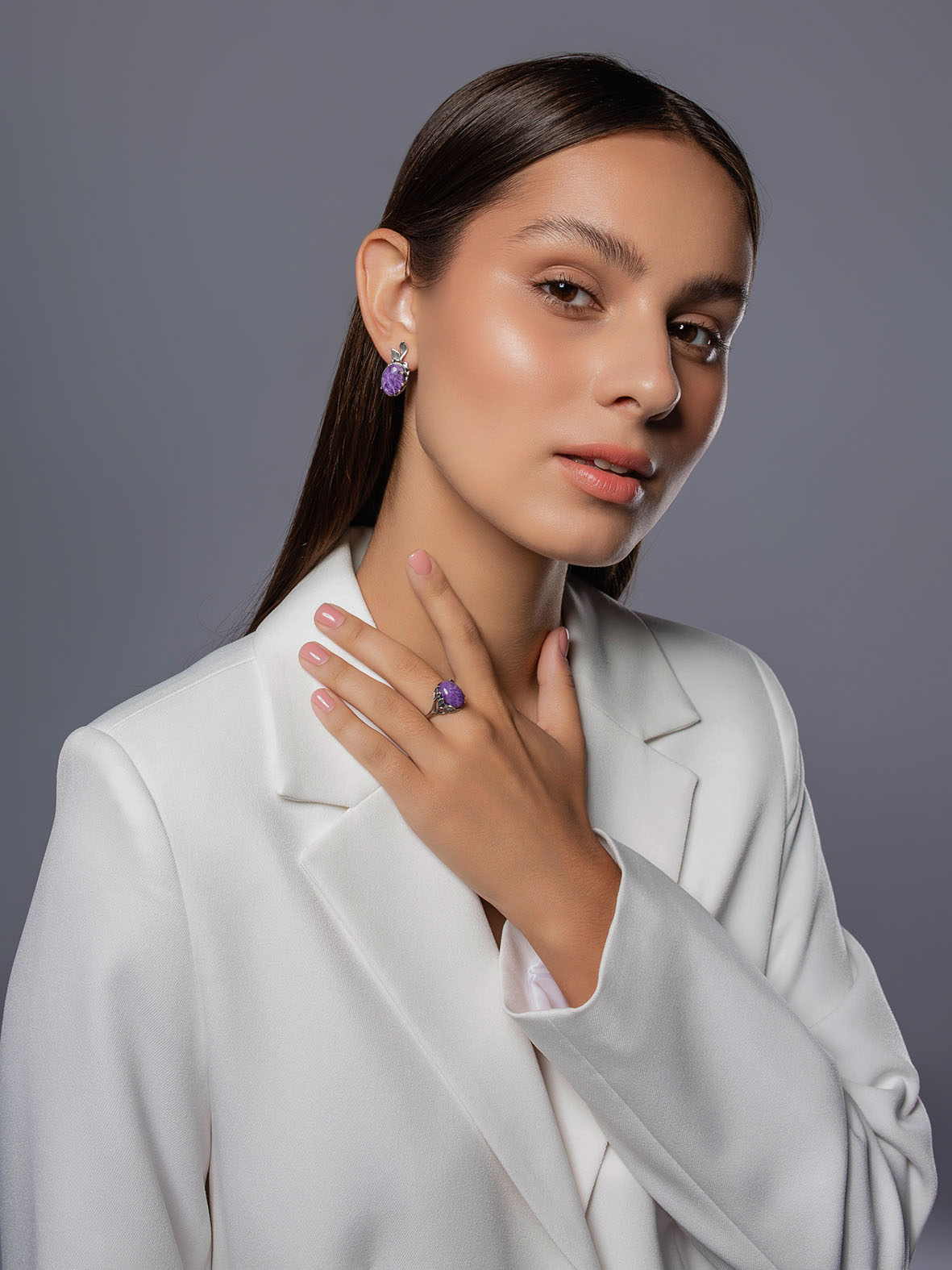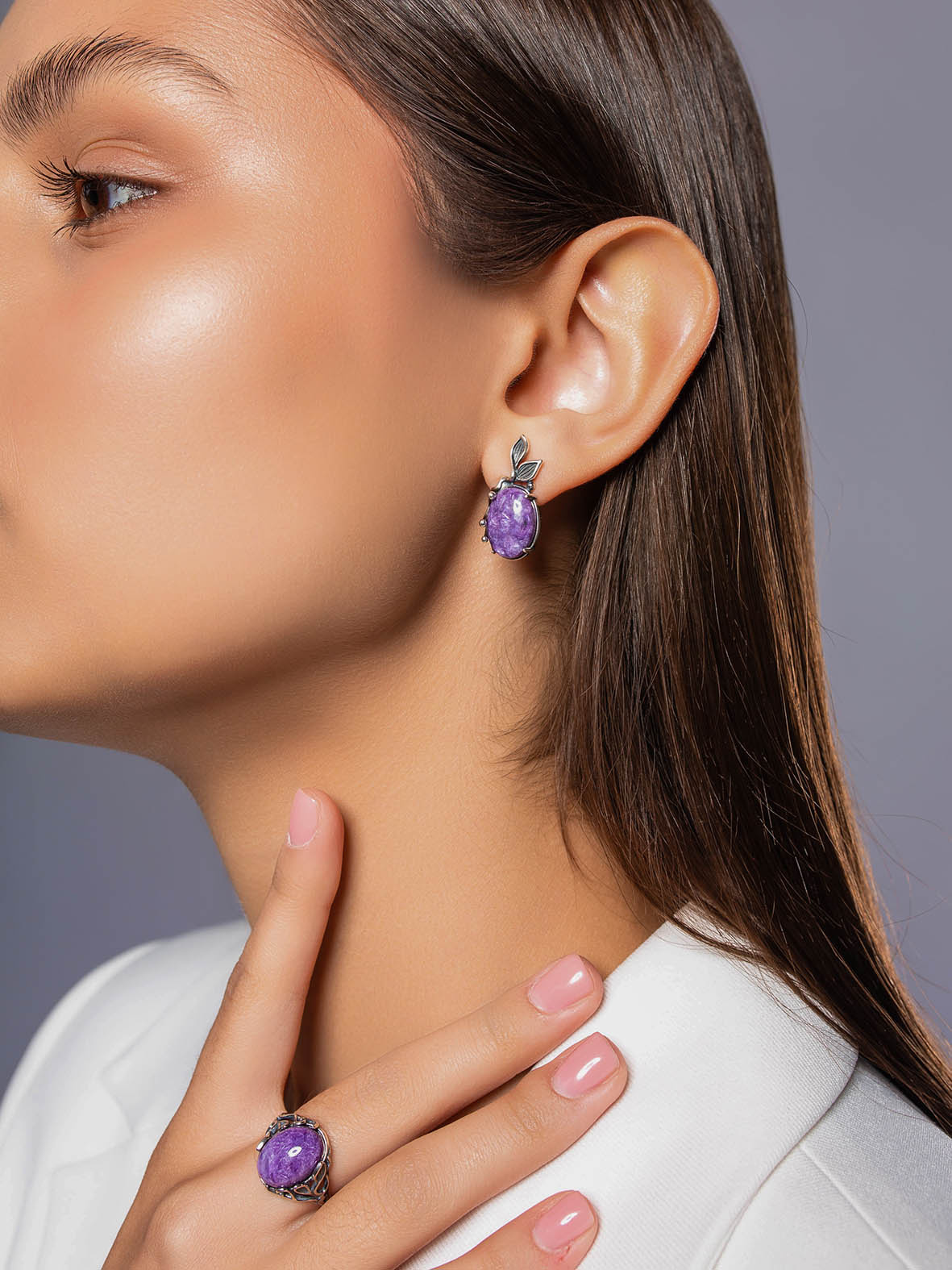 Серьги для женщин из серебра 925 пробы с чароитами из коллекции Flowers (рабочее название) артикул 2310465167 от компании KRASNOE