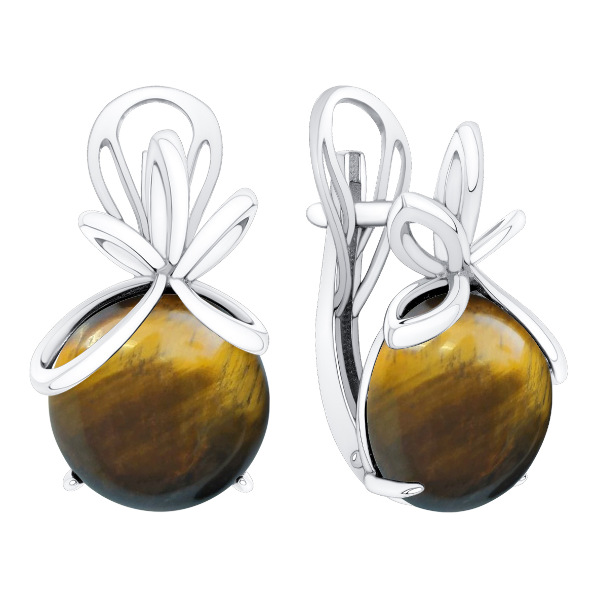 Серьги для женщин из серебра 925 пробы с тигровый глазами из коллекции Уральские самоцветы артикул 2340325807 от компании KRASNOE