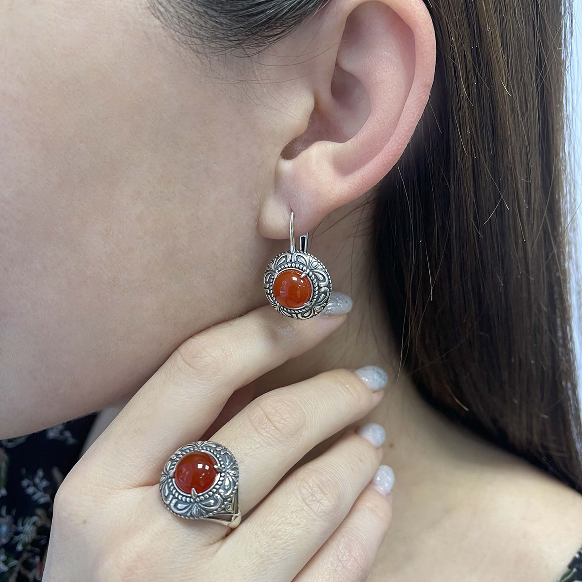 Серьги для женщин из серебра 925 пробы с агатами из коллекции Уральские самоцветы артикул 2310391992-31 от компании KRASNOE