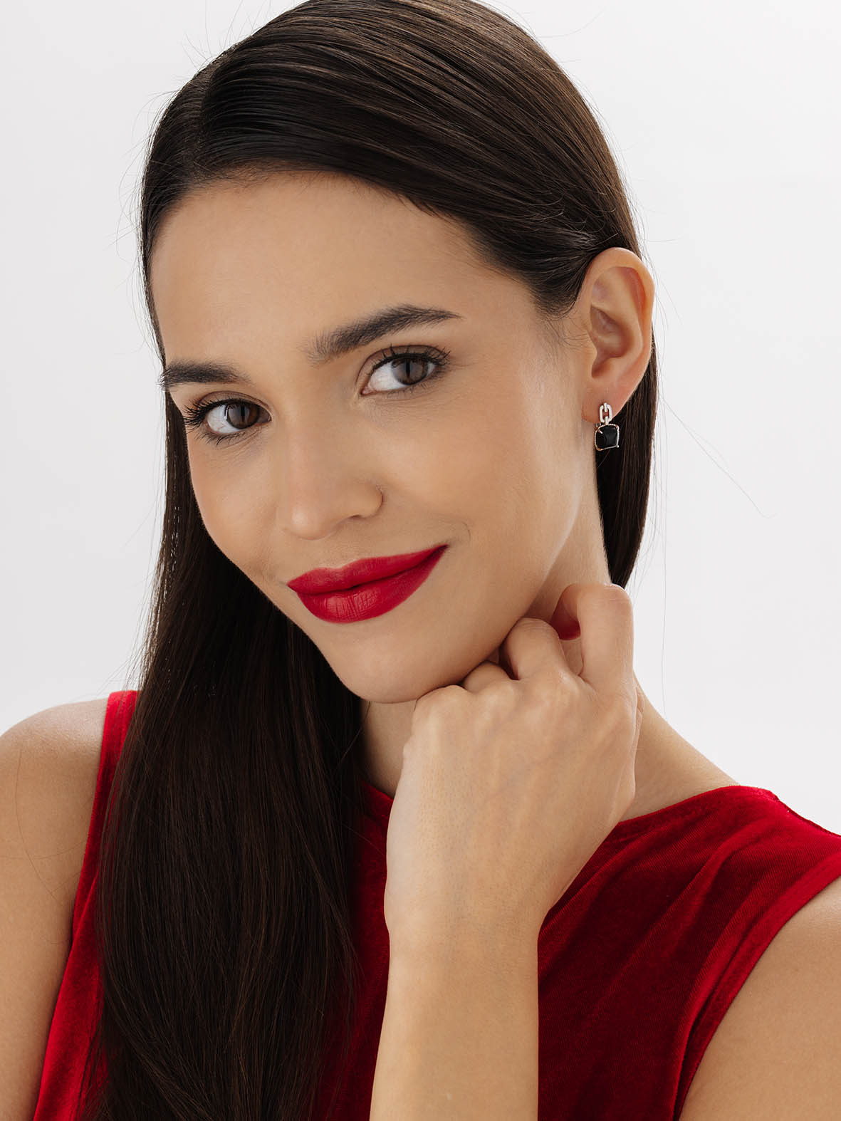 Серьги для женщин из серебра 925 пробы с агатами из коллекции Уральские самоцветы артикул 2340395738-20 от компании KRASNOE