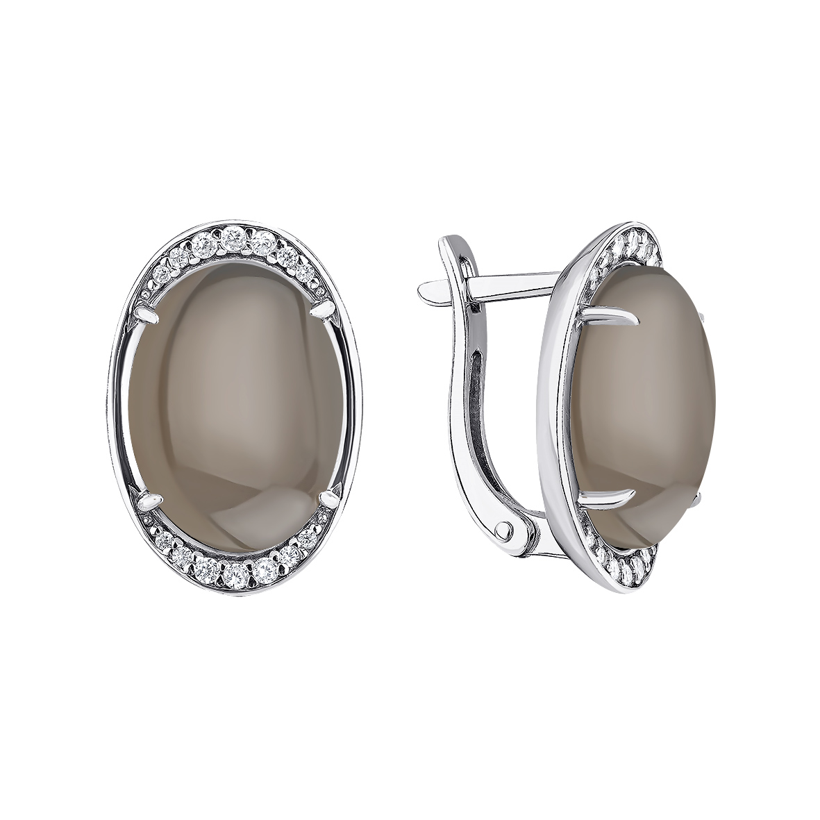 Серьги для женщин из серебра 925 пробы с агатами,фианитами из коллекции Уральские самоцветы артикул 2340391968л-21 от компании KRASNOE