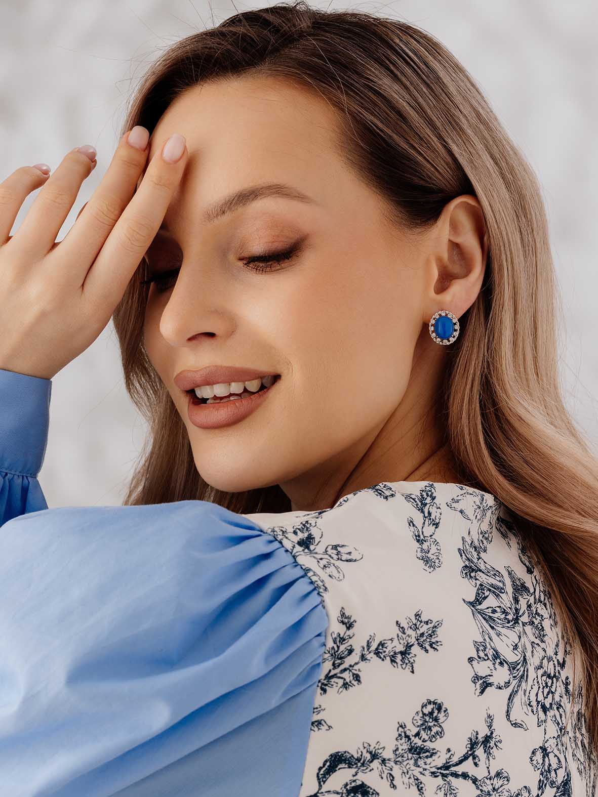 Серьги для женщин из серебра 925 пробы с агатами,фианитами из коллекции Уральские самоцветы артикул 2340390973л-70 от компании KRASNOE