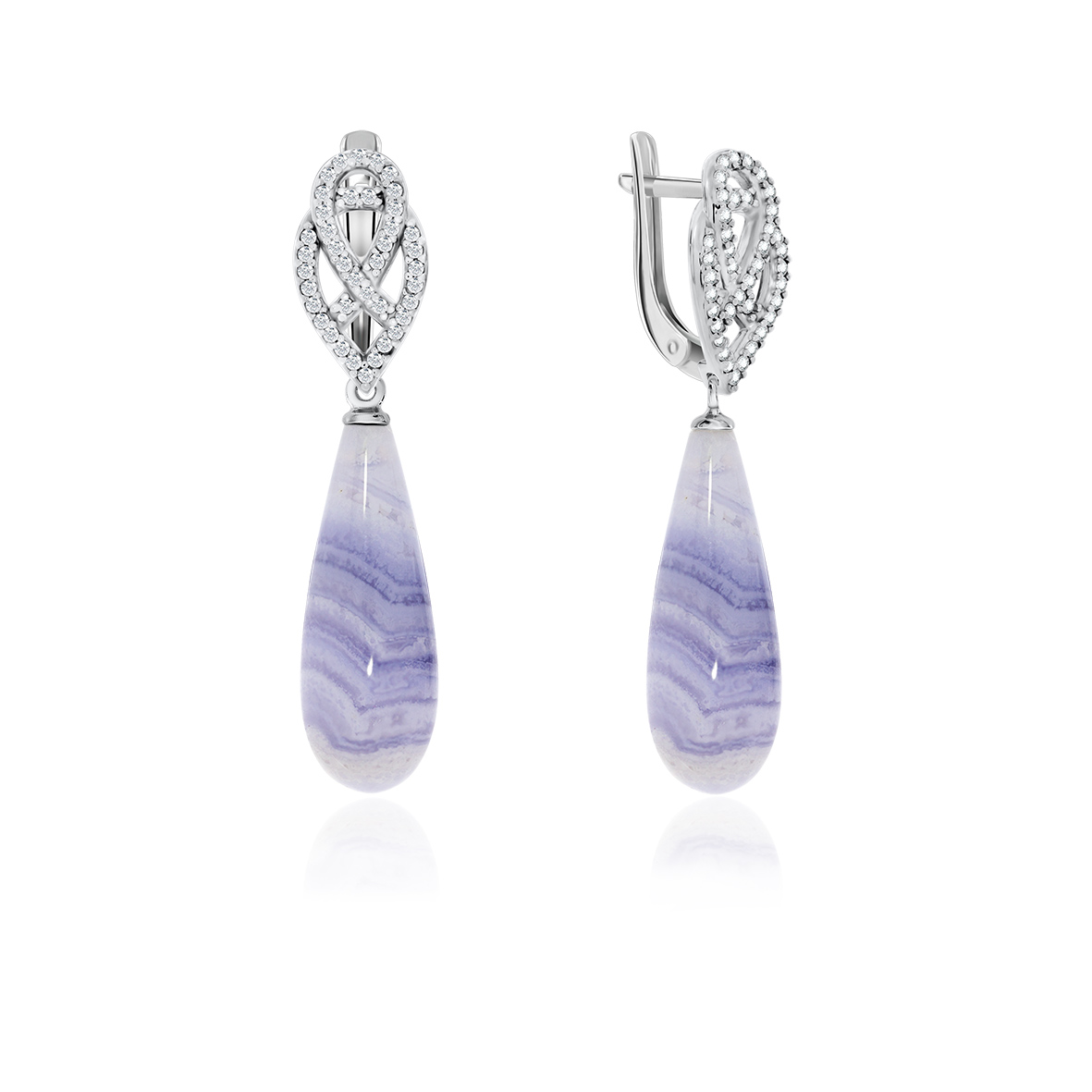 Серьги для женщин из серебра 925 пробы с агатами,фианитами из коллекции Уральские самоцветы артикул 2340390794л-84 от компании KRASNOE
