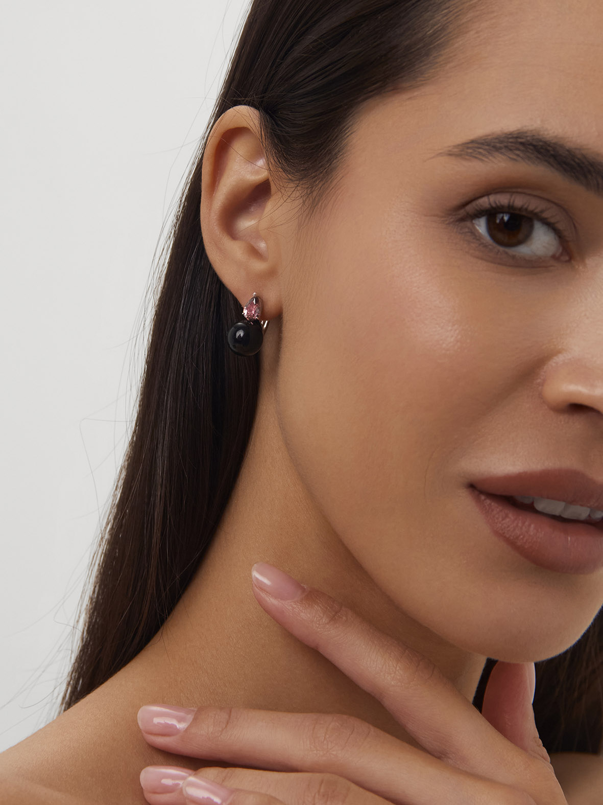 Серьги для женщин из серебра 925 пробы с агатами,фианитами из коллекции Дуэт артикул 2340391396-1-20 от компании KRASNOE