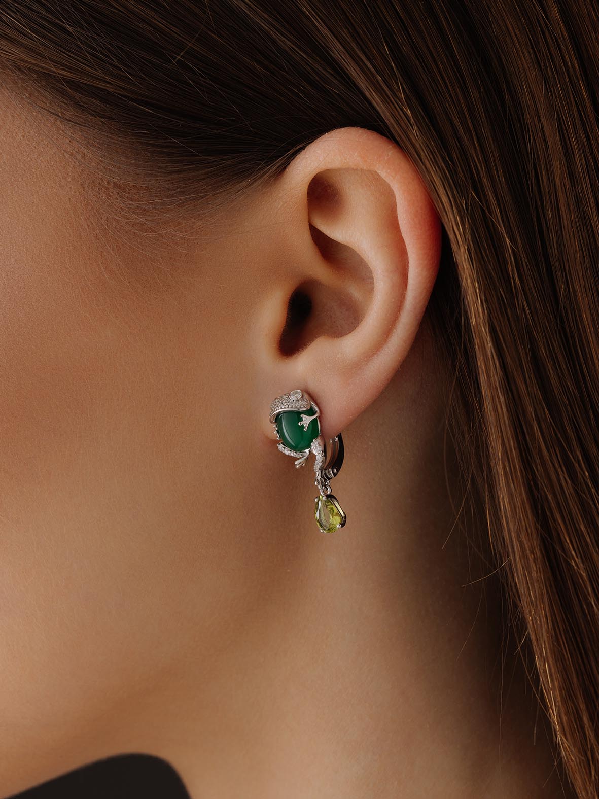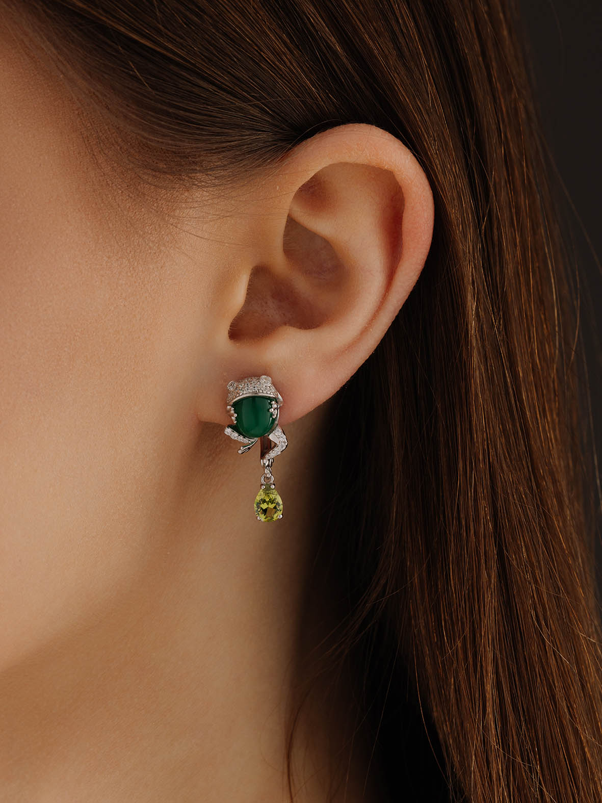 Серьги для женщин из серебра 925 пробы с агатами,ситаллами,,фианитами из коллекции Уральские самоцветы артикул 2340392662л-60 от компании KRASNOE