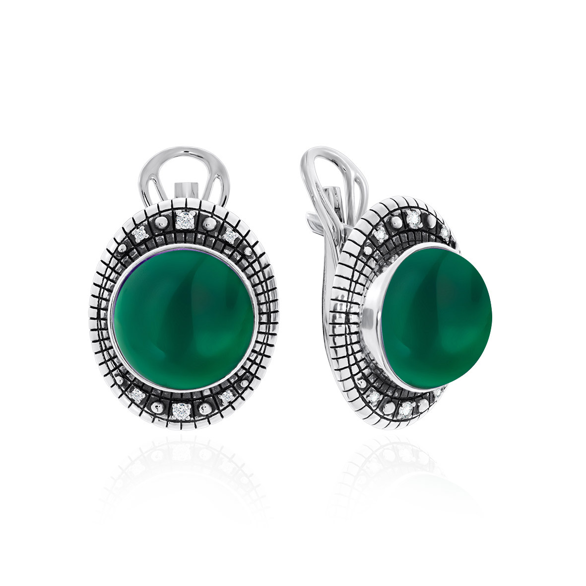 Серьги для женщин из серебра 925 пробы с агатами,фианитами из коллекции Династия артикул 2310390955-60 от компании KRASNOE