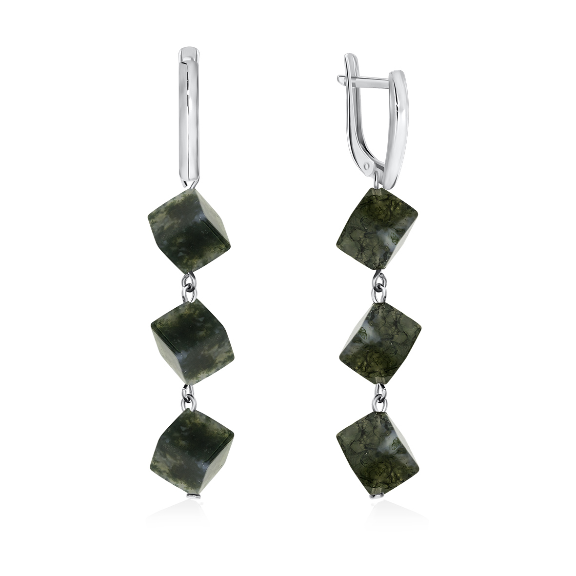 Серьги для женщин из серебра 925 пробы с моховыми агатами из коллекции Грани артикул 2340870352-60 от компании KRASNOE