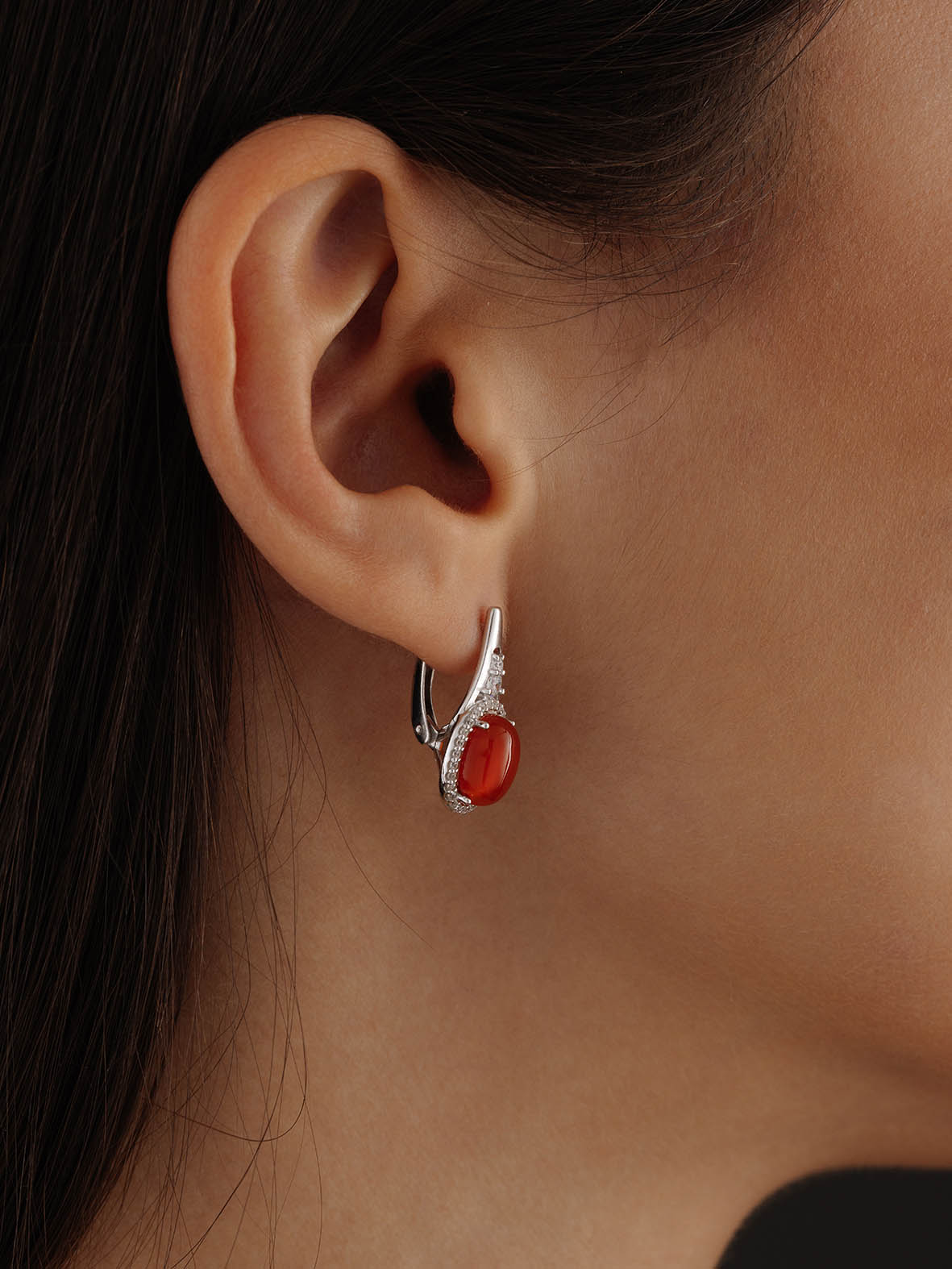Серьги для женщин из серебра 925 пробы с агатами,фианитами из коллекции Ирида артикул 2340390182л-32 от компании KRASNOE