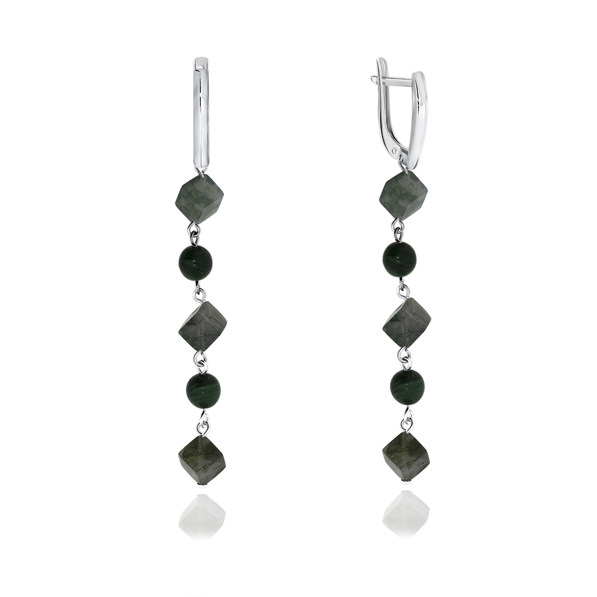 Серьги для женщин из серебра 925 пробы с малахитами,агатами из коллекции Грани артикул 2340870674-10 от компании KRASNOE