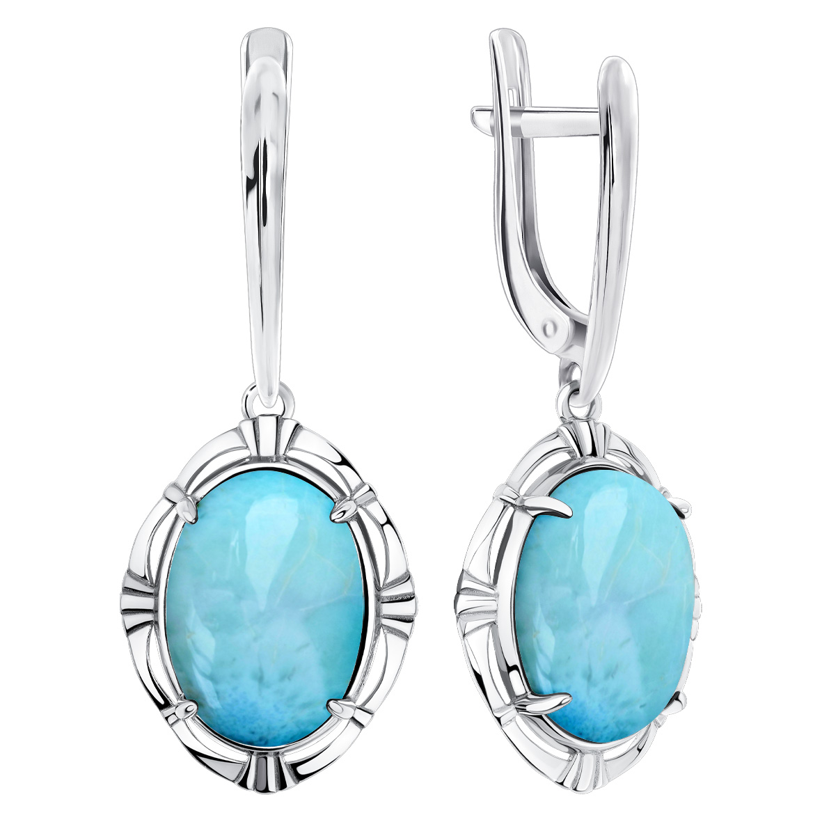 Серьги для женщин из серебра 925 пробы с ларимарами из коллекции Династия артикул 2340Л15702 от компании KRASNOE