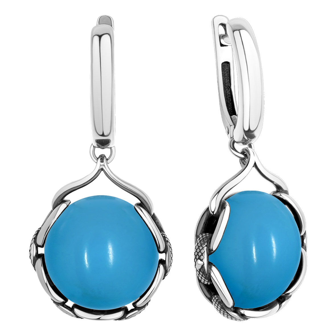Серьги для женщин из серебра 925 пробы с бирюзой из коллекции Уральские самоцветы артикул 2310Б25735 от компании KRASNOE