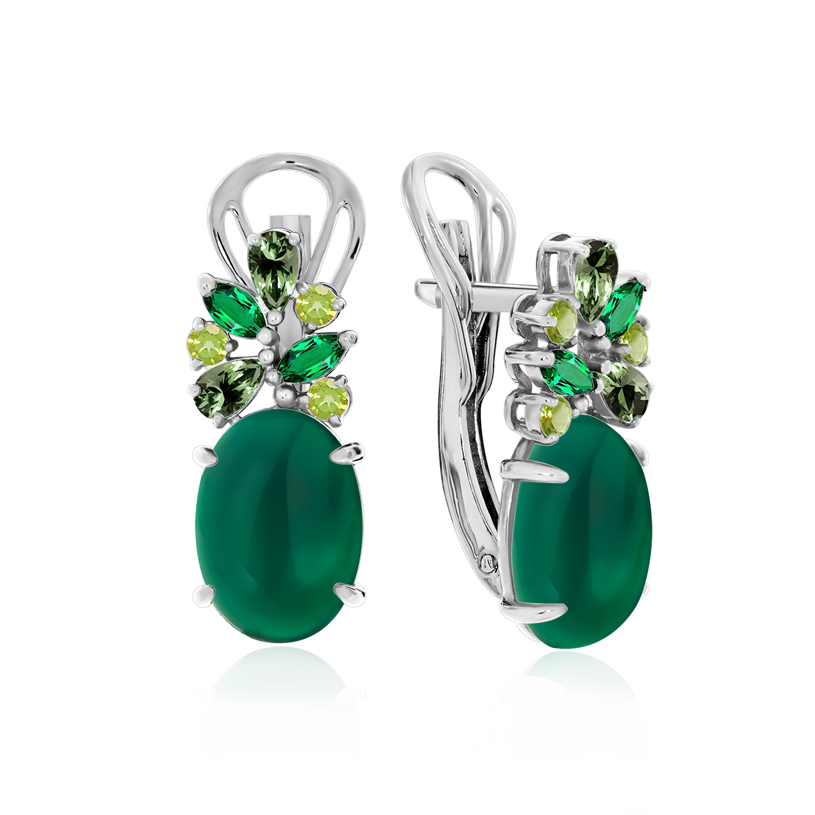 Серьги для женщин из серебра 925 пробы с агатами,наноизумрудами,,фианитами,,кварцем из коллекции Уральские самоцветы артикул 2340390886-60 от компании KRASNOE