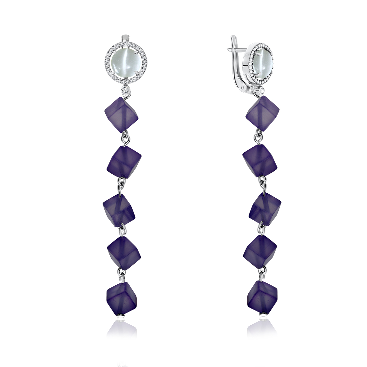 Серьги для женщин из серебра 925 пробы с кошачим глазом,агатами,фианитами из коллекции Грани артикул 2340870663-12 от компании KRASNOE
