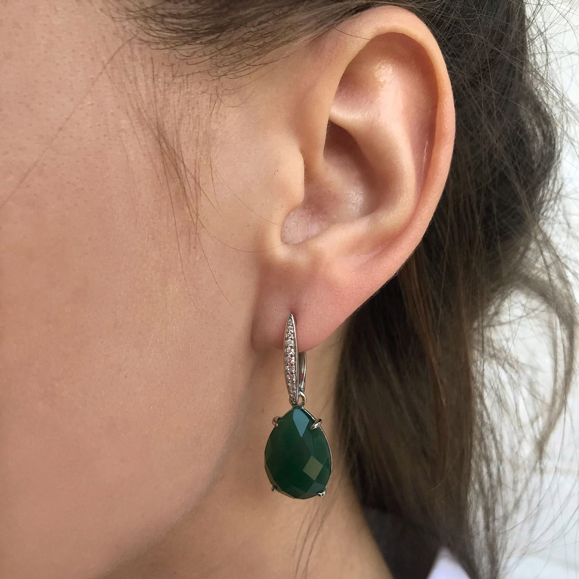 Серьги для женщин из серебра 925 пробы с агатами,фианитами из коллекции Уральские самоцветы артикул 2340390504л-60 от компании KRASNOE