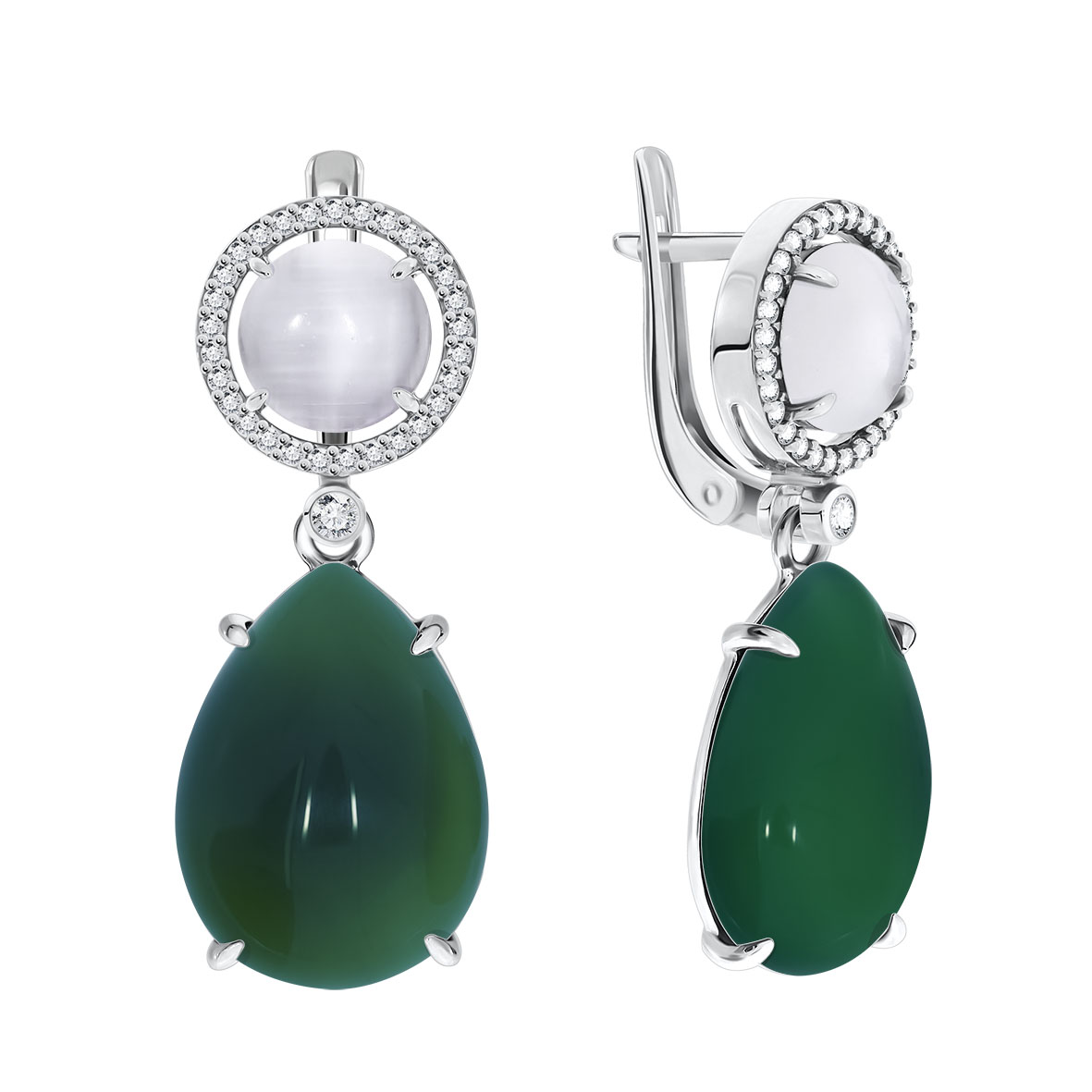 Серьги для женщин из серебра 925 пробы с агатами,кошачий глазами,,фианитами из коллекции Уральские самоцветы артикул 2340870503л-31 от компании KRASNOE