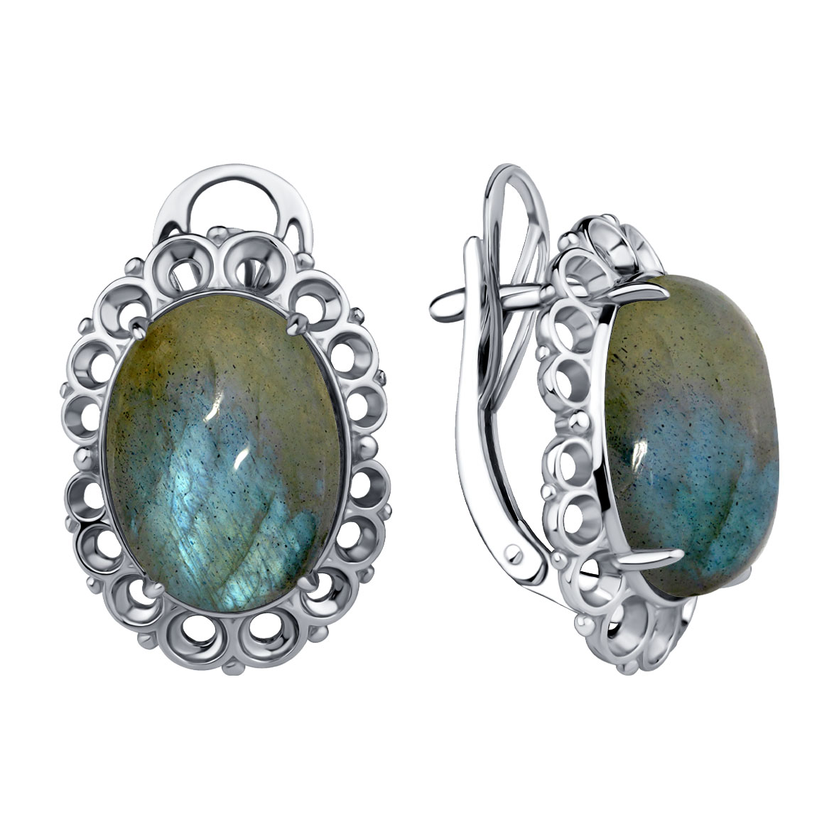 Серьги для женщин из серебра 925 пробы с лабрадоритами из коллекции Уральские самоцветы артикул 2310Л05724 от компании KRASNOE