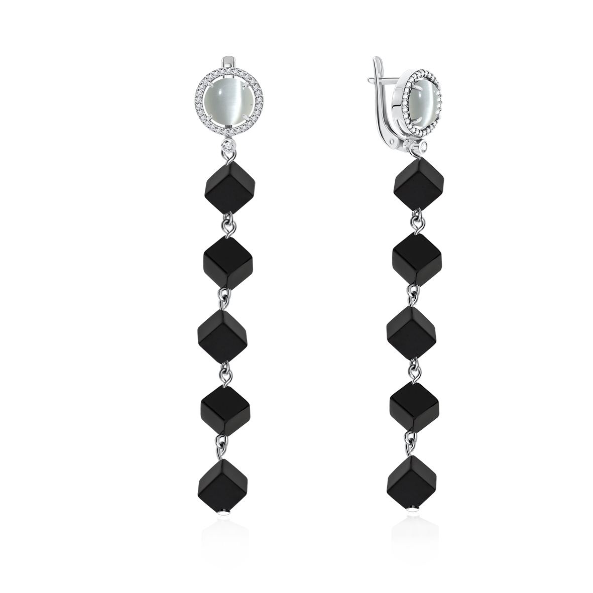 Серьги для женщин из серебра 925 пробы с кошачий глазами,агатами,,фианитами из коллекции Грани артикул 2340870663л-6 от компании KRASNOE