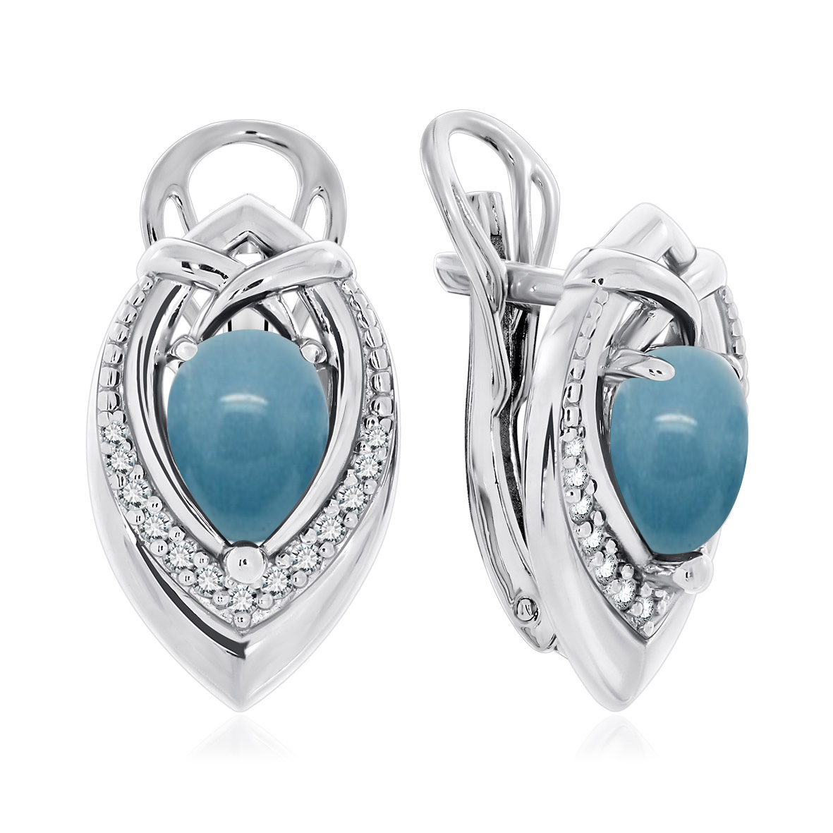 Серьги для женщин из серебра 925 пробы с аквамаринами,фианитами из коллекции Медина артикул 2340950948 от компании KRASNOE
