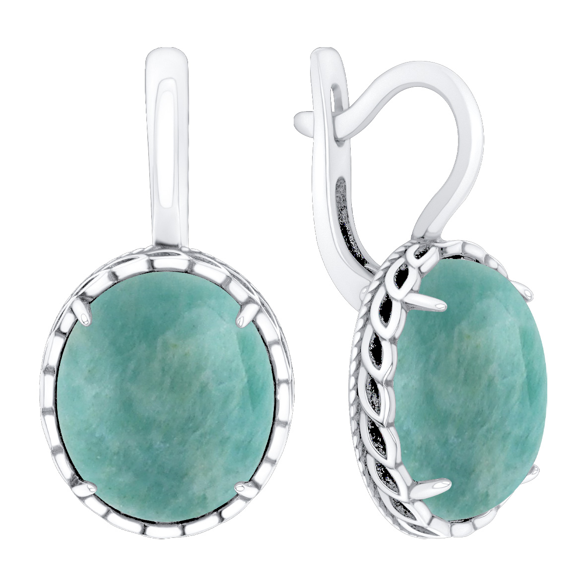 Серьги для женщин из серебра 925 пробы с амазонитами из коллекции Уральские самоцветы артикул 2340375770 от компании KRASNOE