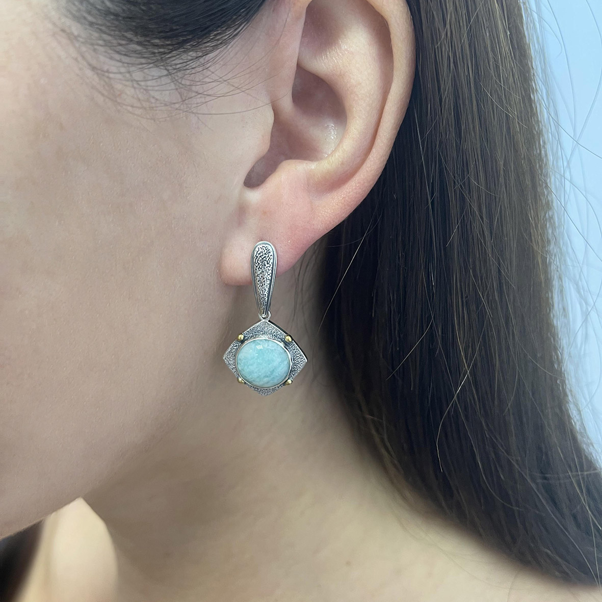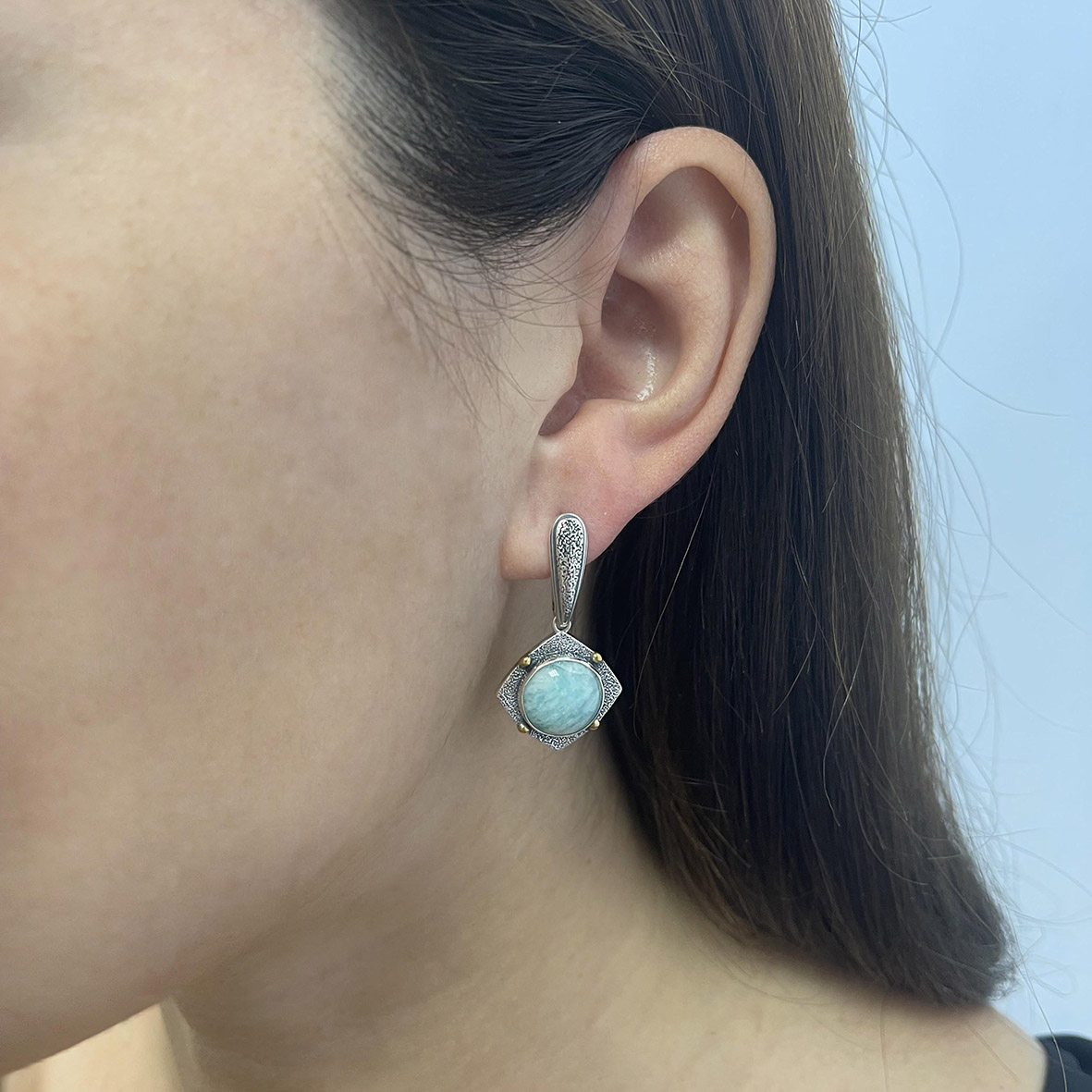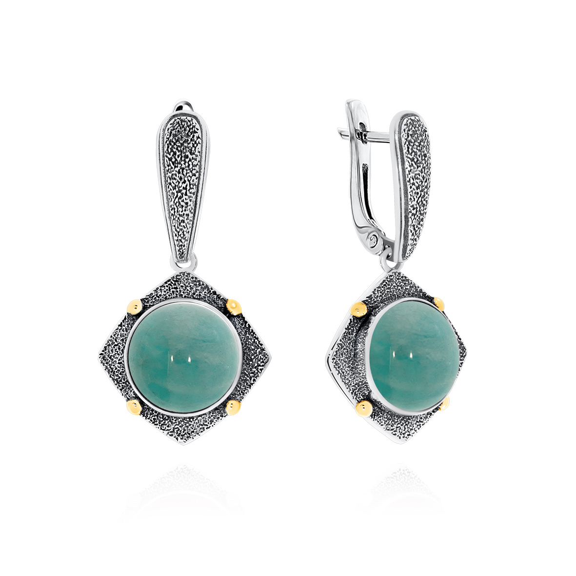 Серебряные серьги с амазонитом из коллекции "Vintage" изящные украшения, лаконичный вариант как на каждый день, так и для выхода. Подходит, если вы хотите сделать акцент на лице, не перегружая образ. Такая конструкция является одновременно и практичной, и красивой. Они подходят к любой форме лица, способны украсить любой образ. KRASNOE - нежные и трендовые украшения из серебра 925 собственной разработки, дизайна и производства для красоты твоих будней! В коллекцию ювелирного бренда KRASNOE входят пусеты, колье-чокеры и галстуки, джекеты, серьги-трансформеры, а также яркие детские изделияДлинна серьги 3.6см.Занижение штифта 3мм.Рабочая зона иглы 6мм.Размер камня 12мм.