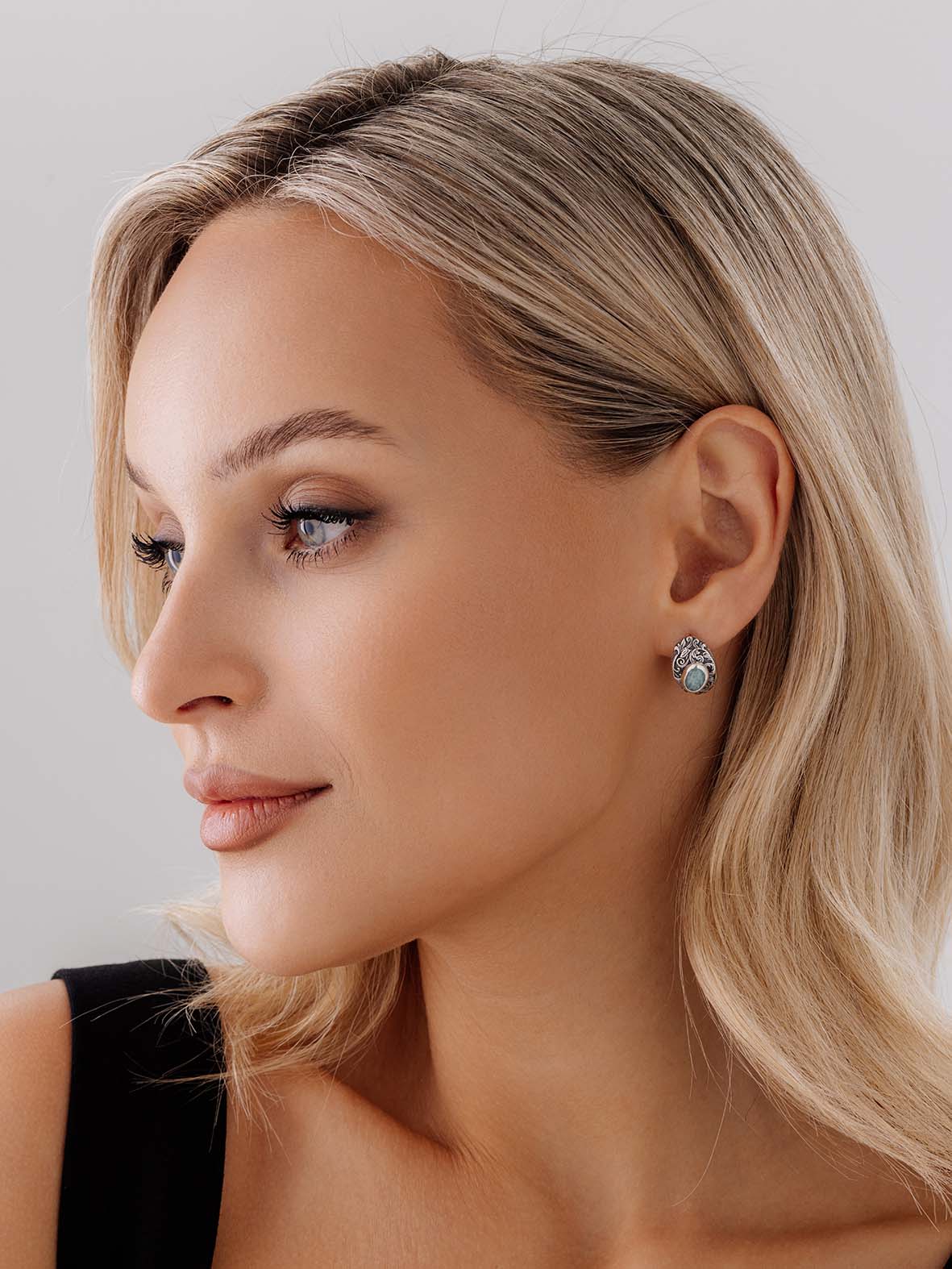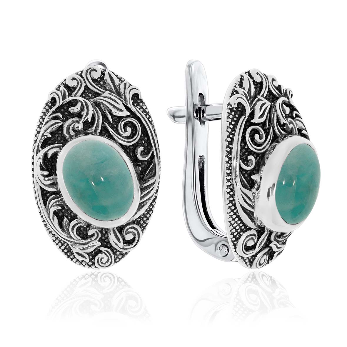 Серьги для женщин из серебра 925 пробы с амазонитами из коллекции Boyarynia артикул 2310371369 от компании KRASNOE