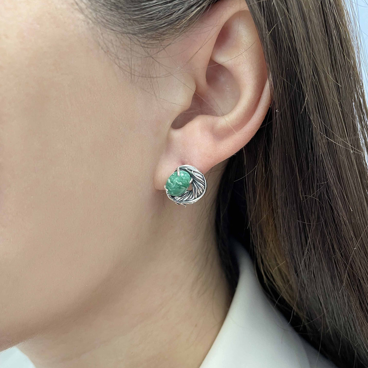 Серьги для женщин из серебра 925 пробы с амазонитами из коллекции Жар-птица артикул 2310371601 от компании KRASNOE