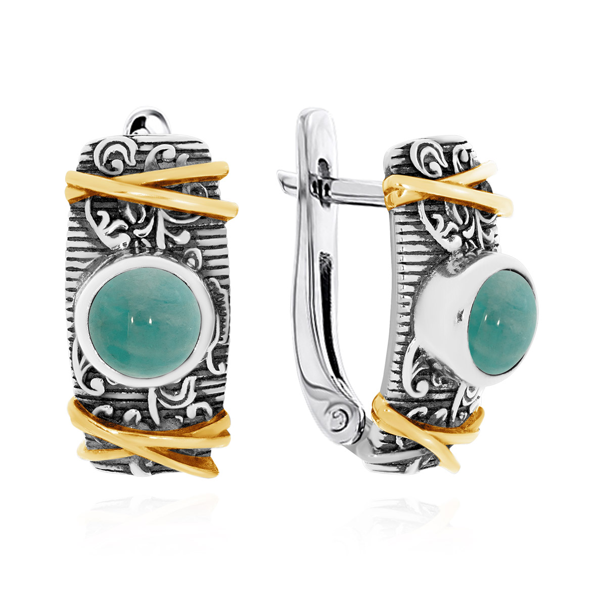 Серьги для женщин из серебра 925 пробы с амазонитами из коллекции Boyarynia артикул 2317371365 от компании KRASNOE