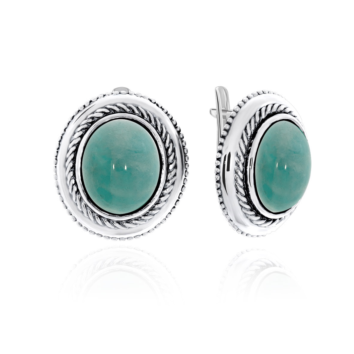 Серьги для женщин из серебра 925 пробы с амазонитами из коллекции Династия артикул 2310370933 от компании KRASNOE