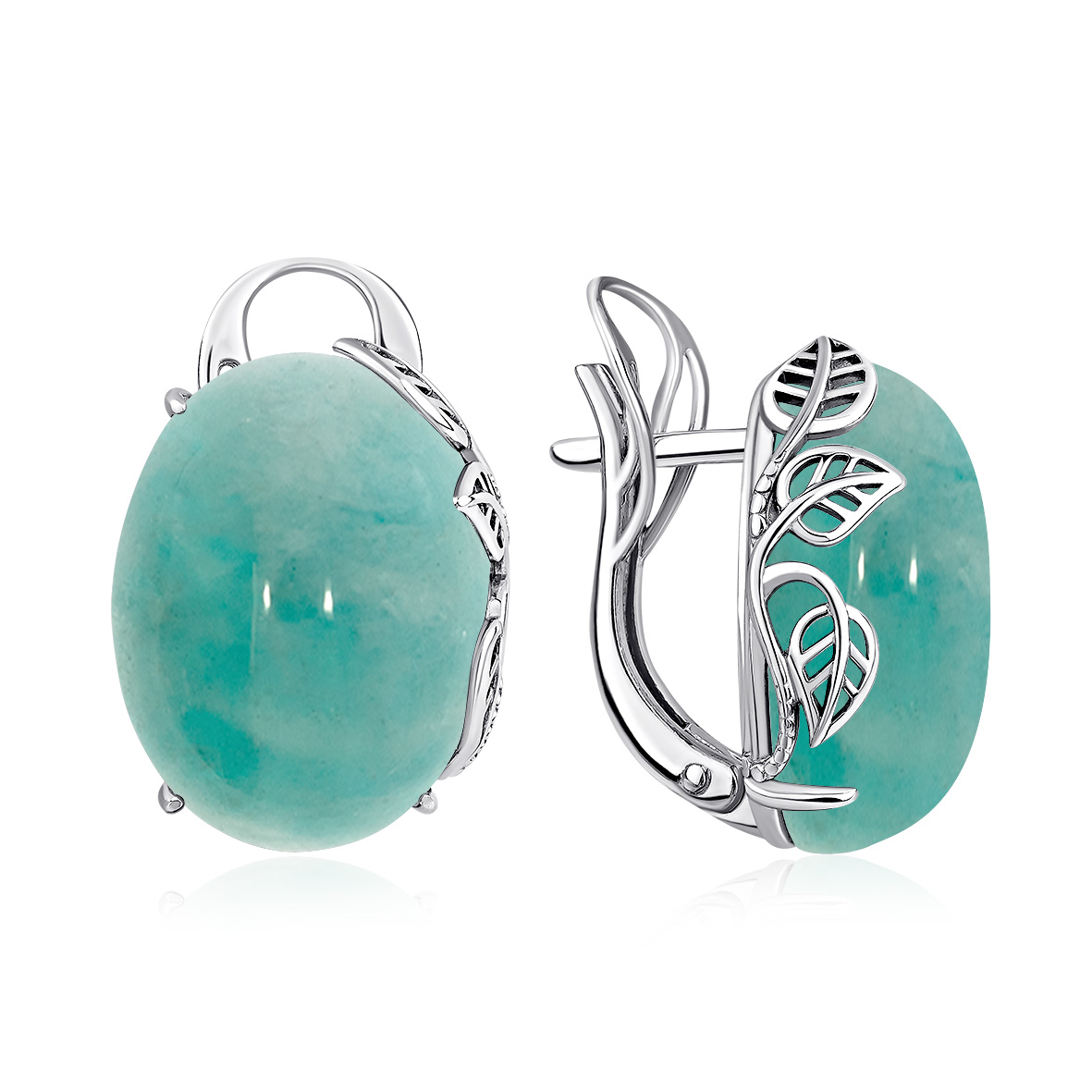 Серьги для женщин из серебра 925 пробы с амазонитами из коллекции Flowers (рабочее название) артикул 2310375049 от компании KRASNOE