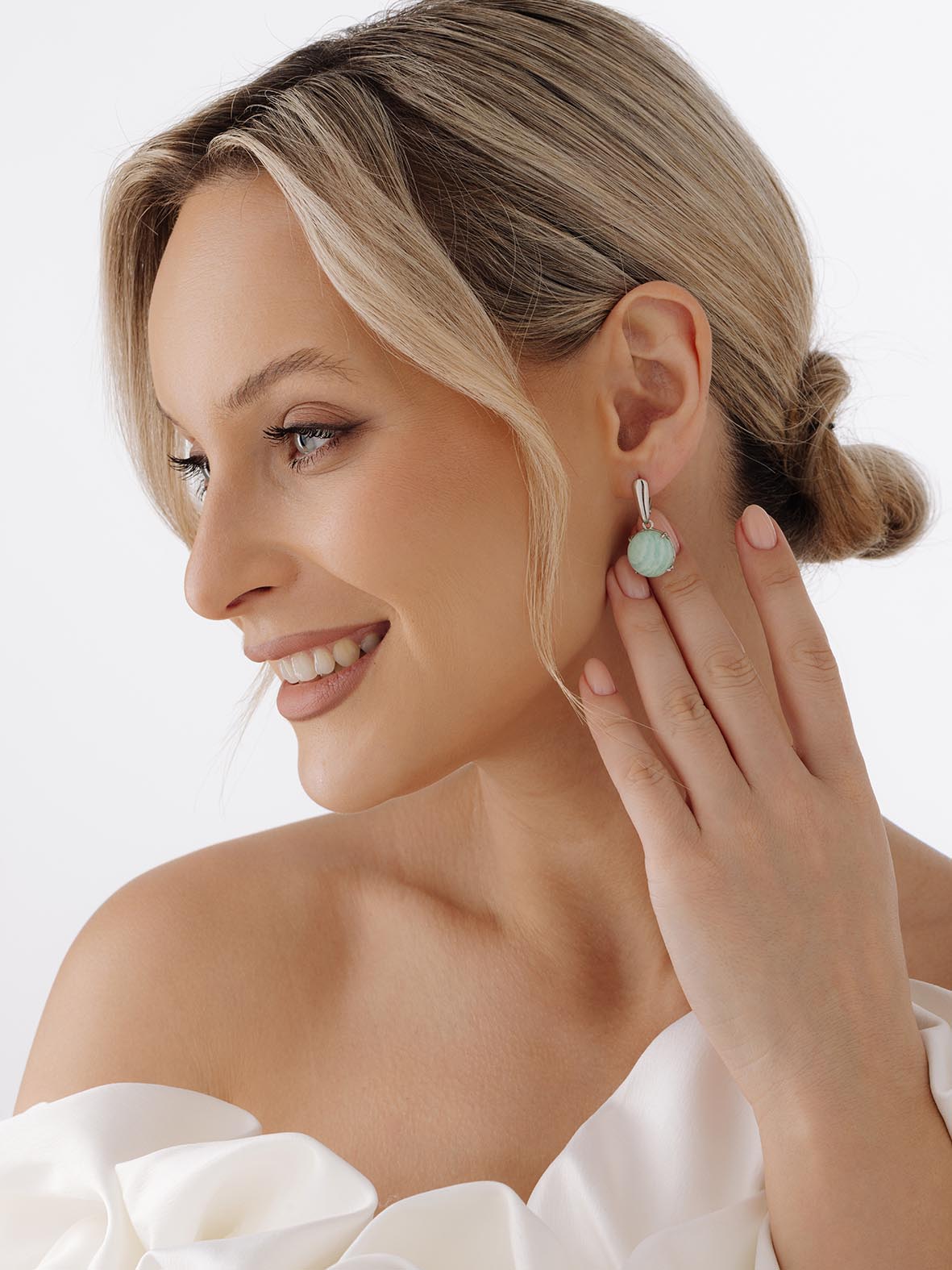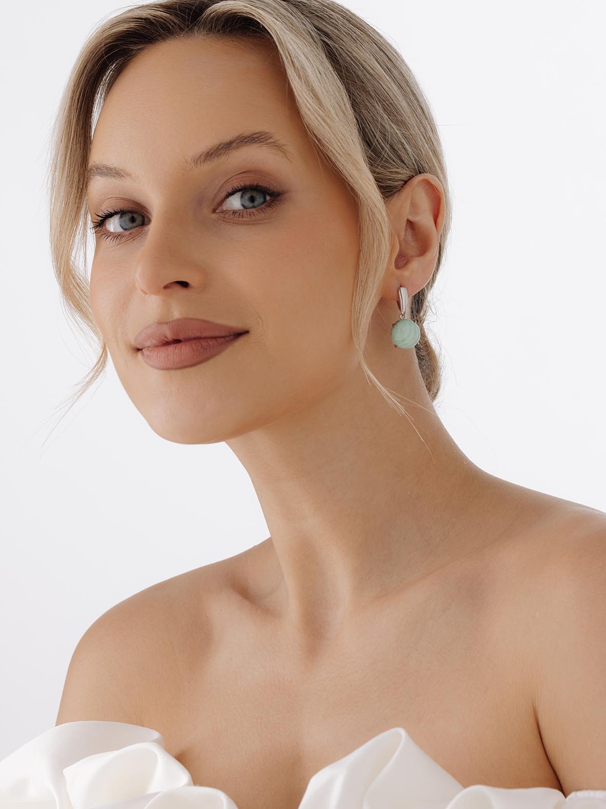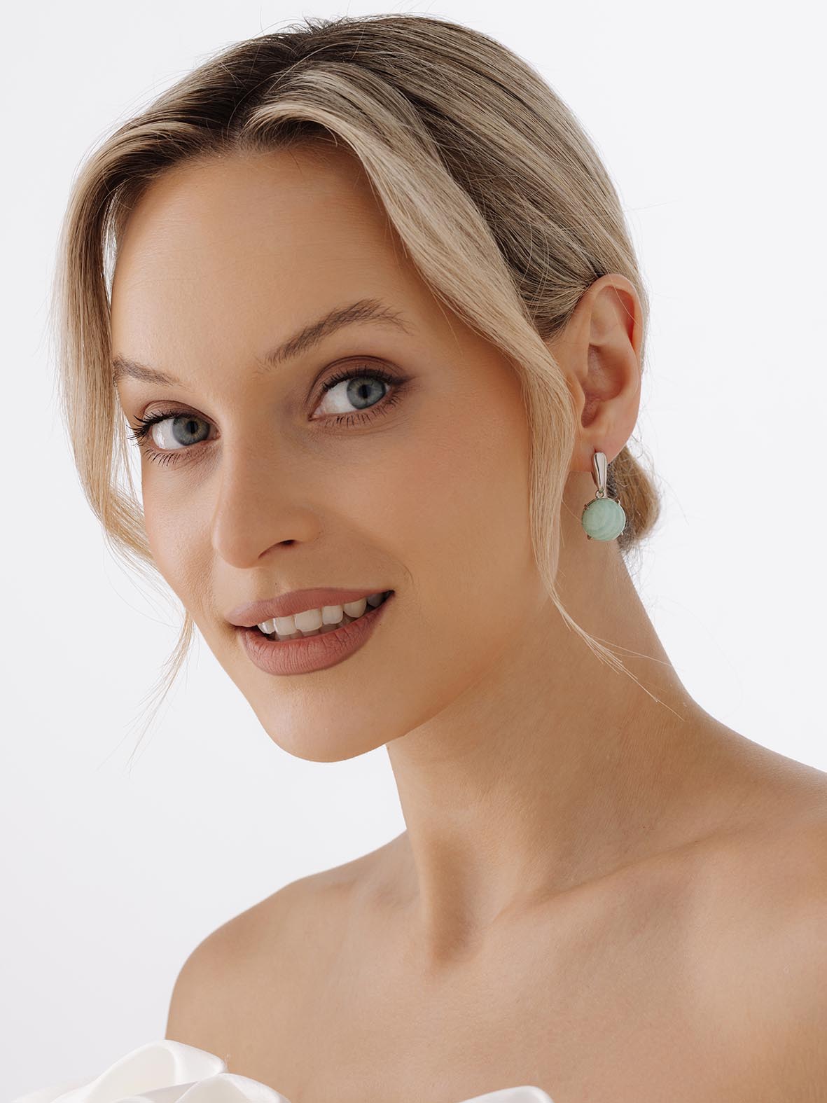 Серьги для женщин из серебра 925 пробы с амазонитами из коллекции Уральские самоцветы артикул 2340370660 от компании KRASNOE