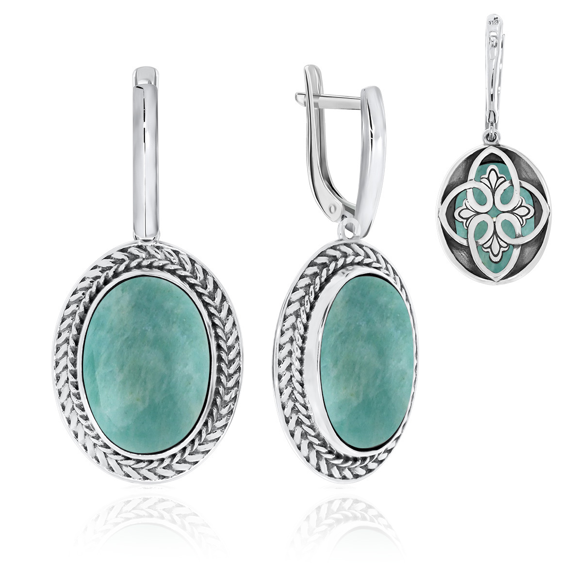 Серьги для женщин из серебра 925 пробы с амазонитами из коллекции Династия артикул 2340370966 от компании KRASNOE